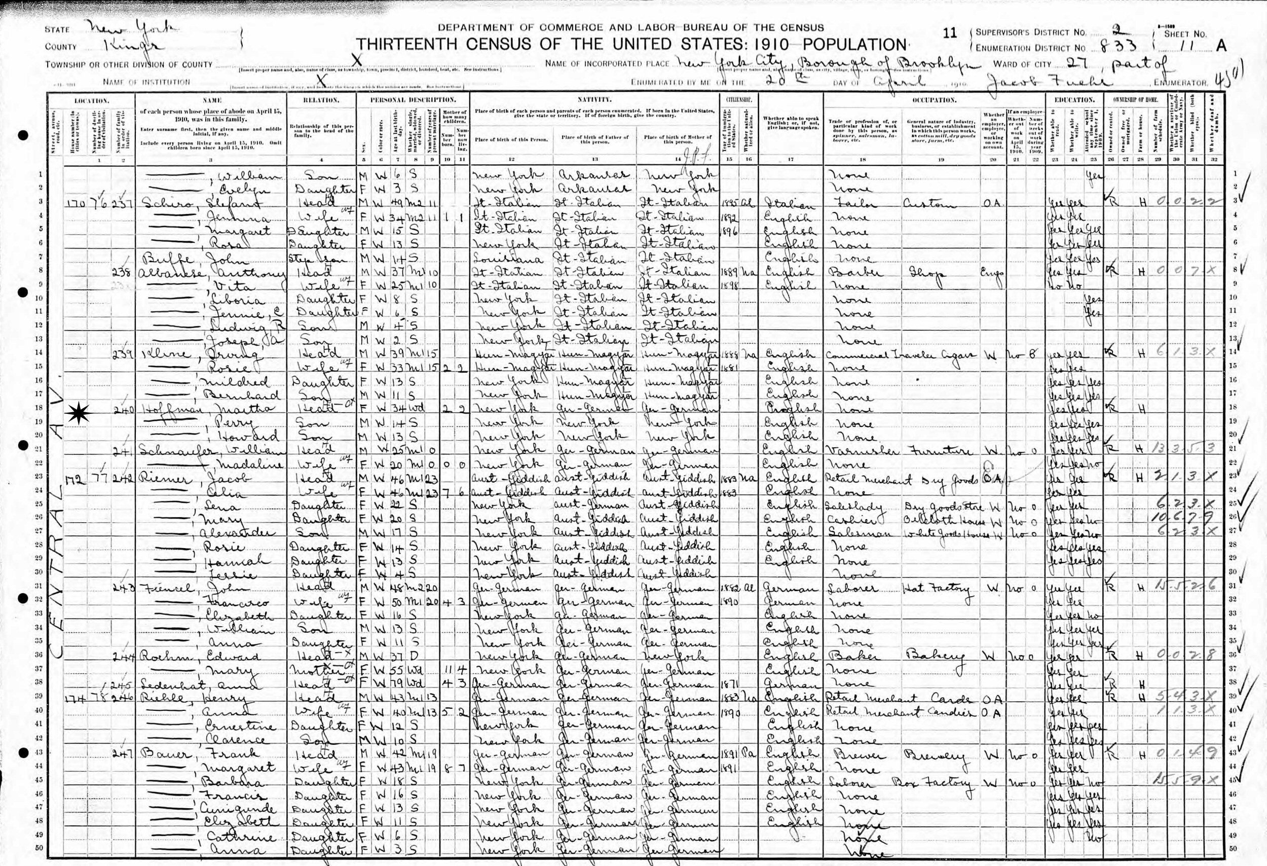 April 20, 1910 - 170 Central Avenue, Ward 27, Supervisor's District 2, Enumeration District 833, Brooklyn, Kings County, New York.