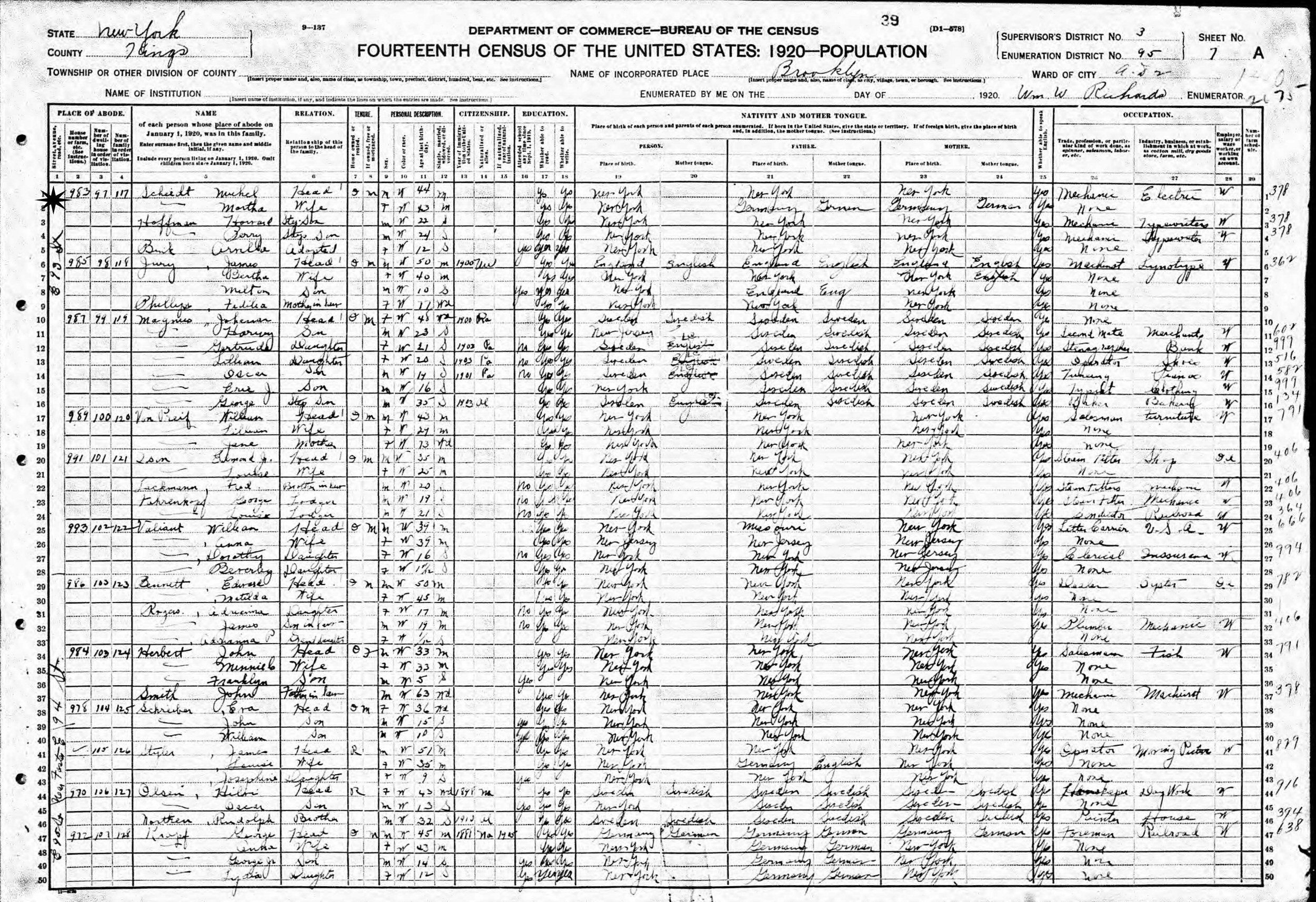 June 1, 1925 - New York State - 983 E 93rd Street, Election District 39, Assembly District 2, Block 8, Brooklyn, Kings County, New York.