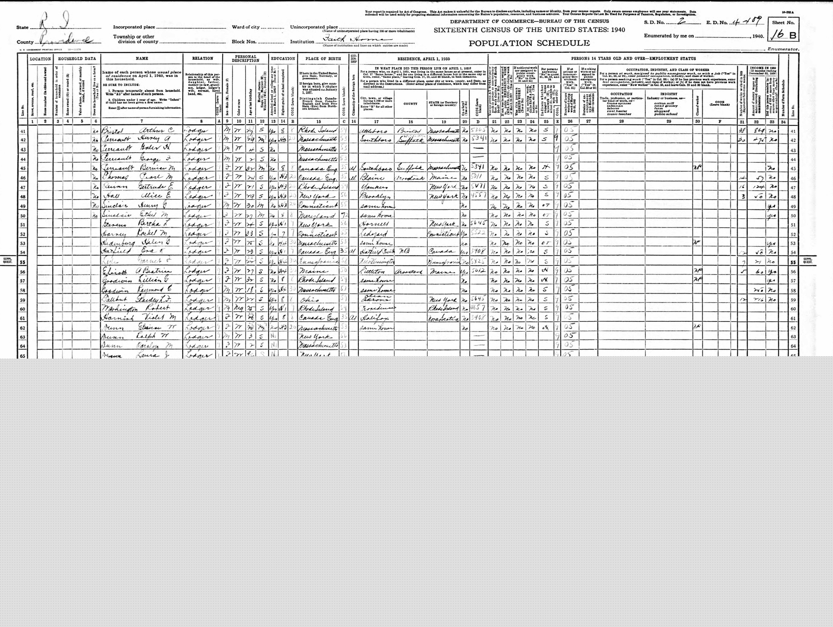 April 8, 1940 - Faith Home, Supervisor's District 2, Enumeration District 4-109, East Providence Town, Providence County, Rhode Island (Lodger. Faith Home was a hospice operated on a faith basis for the sick terminally ill.)