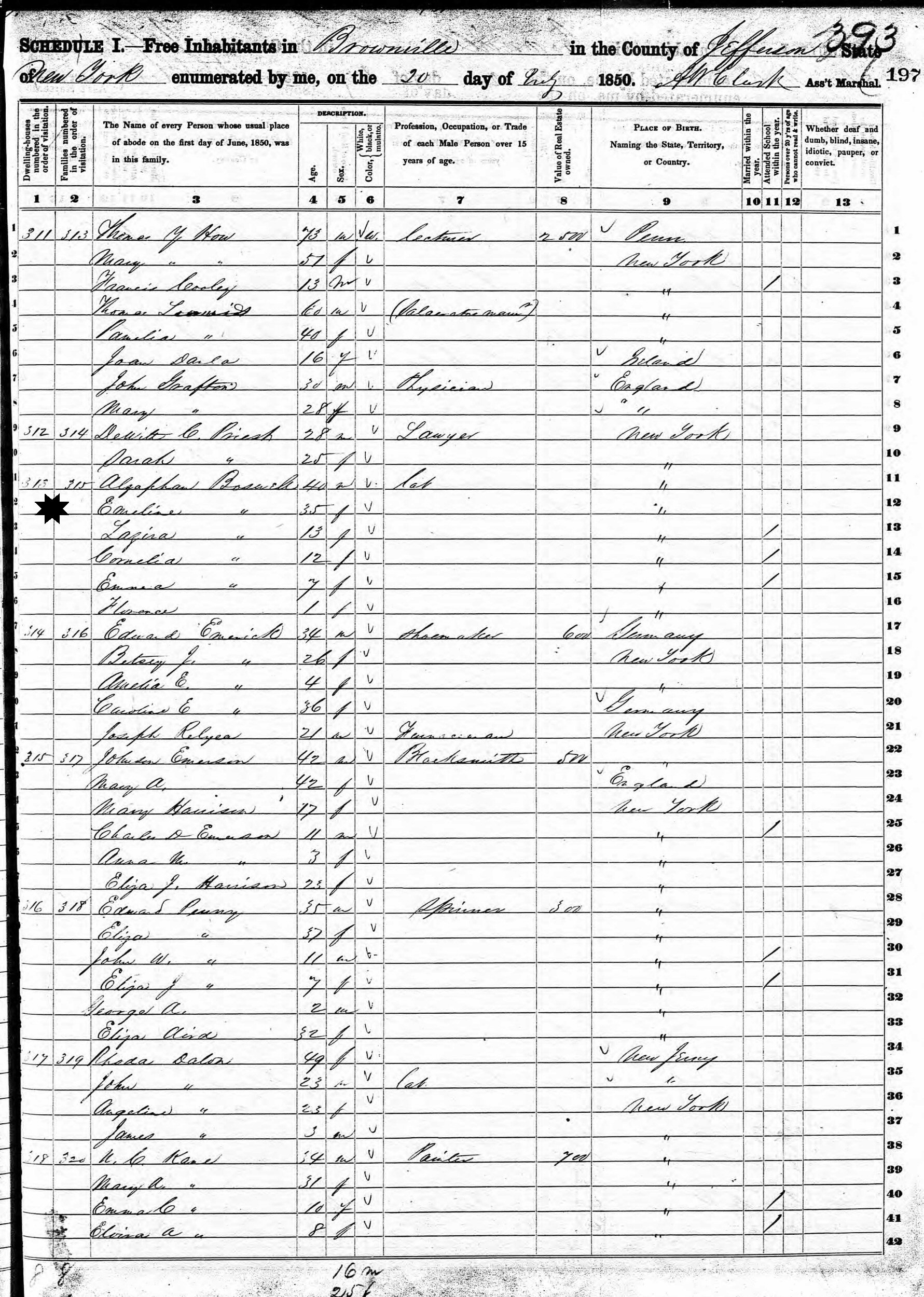 July 20, 1850 - Brownville, Jefferson County, New York.