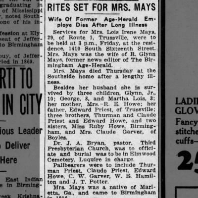 Married: Rayford Glynn Mays, Sr December 25, 1919 in Birmingham, Jefferson County, Alabama.