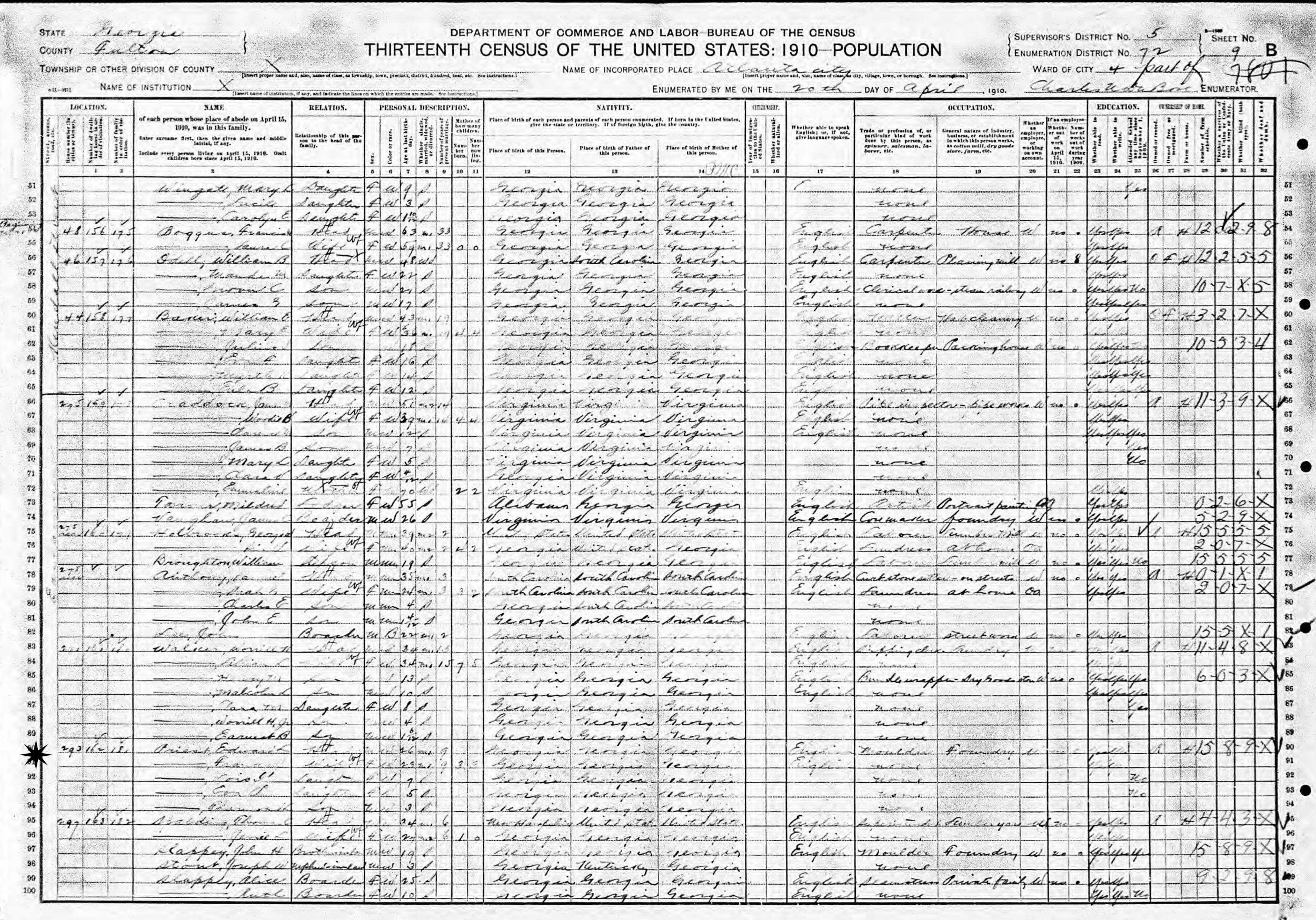 April 20, 1910 - 293 Edgarwood, Ward 4, Supervisor's District 5, Enumeration District 72, Atlanta, Fulton County, Georgia.