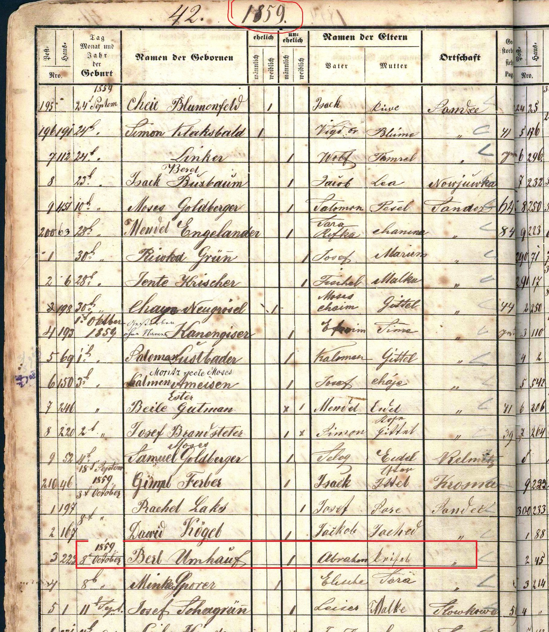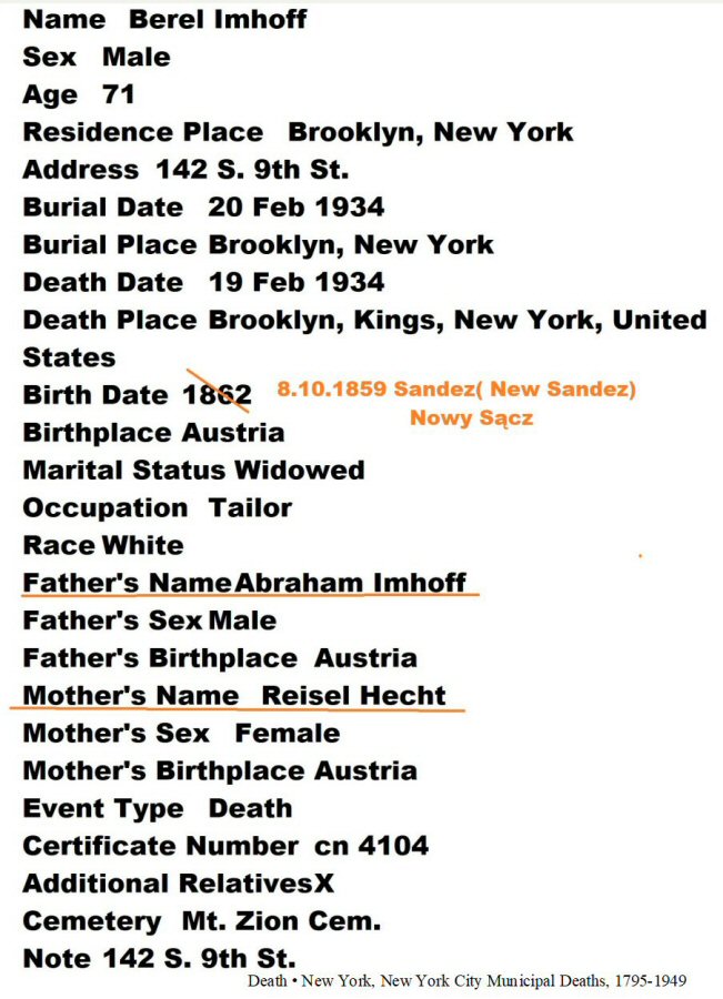 Son of Abraham and Reisel (Fink) Imhof.