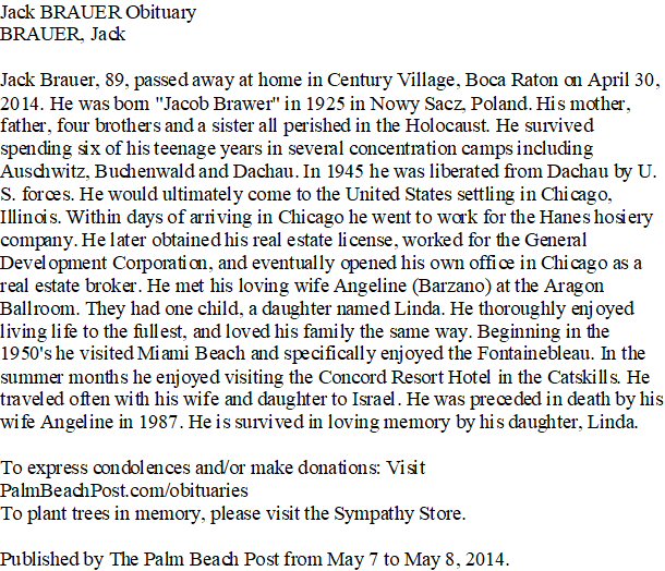 Died: April 30, 2014 in Century Village, Boca Raton, Florida.