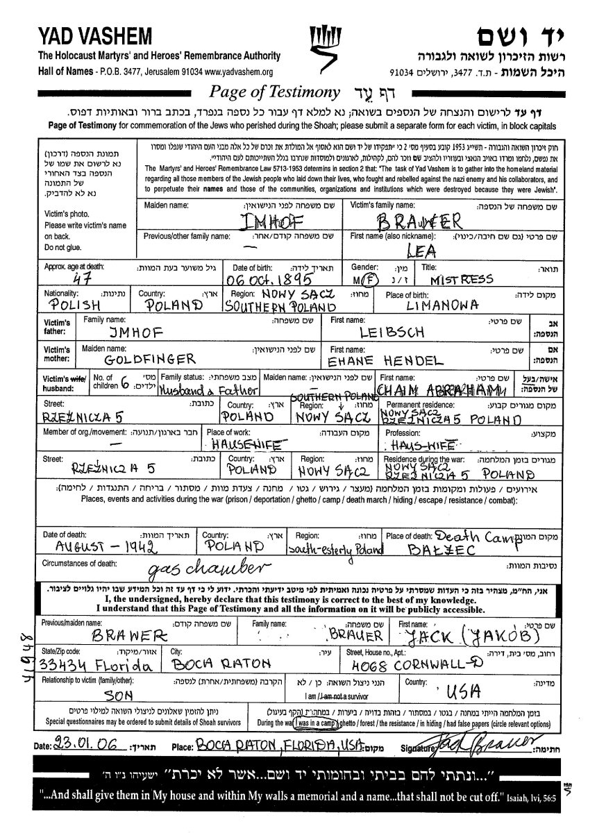 Died: August, 1942 in Belzec Concentration Camp, Poland.