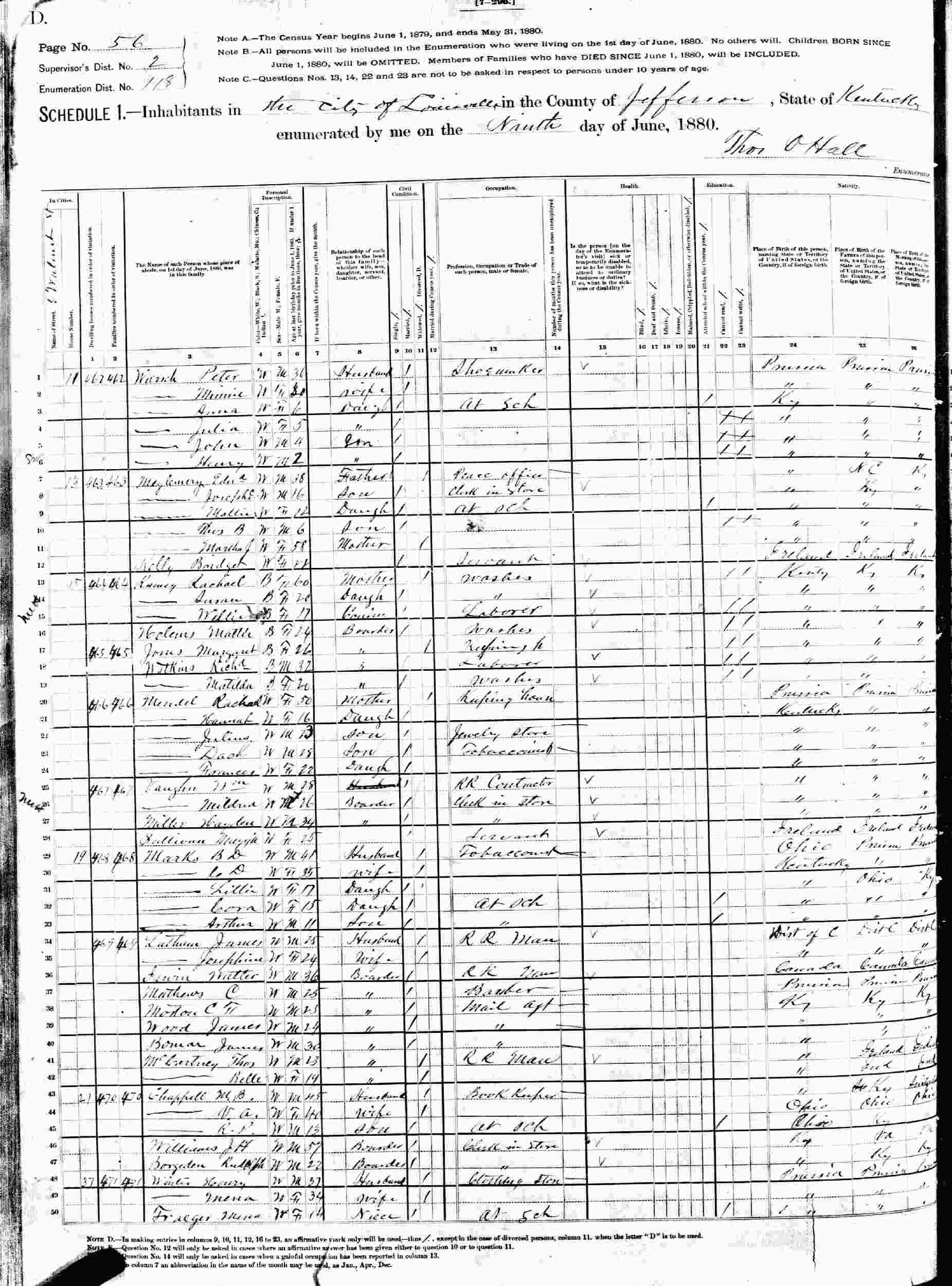 June 9, 1880 - 19 E Walnut Street, Supervisor's District 2, Enumeration District 118, Louisville, Jefferson County, Kentucky.