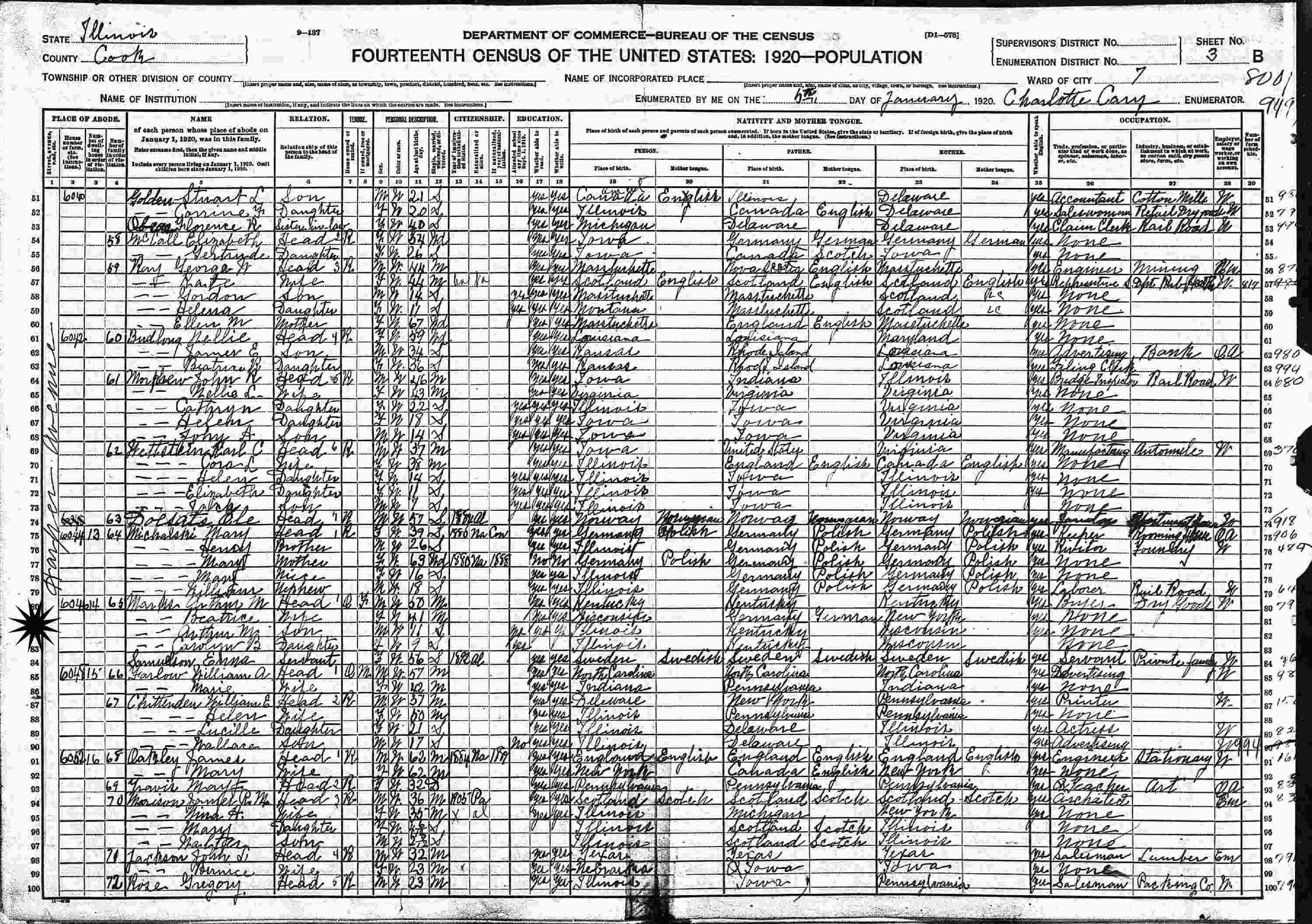January 5, 1920 - 604 Harper Avenue, Ward 7, Chicago, Cook County, Illinois.