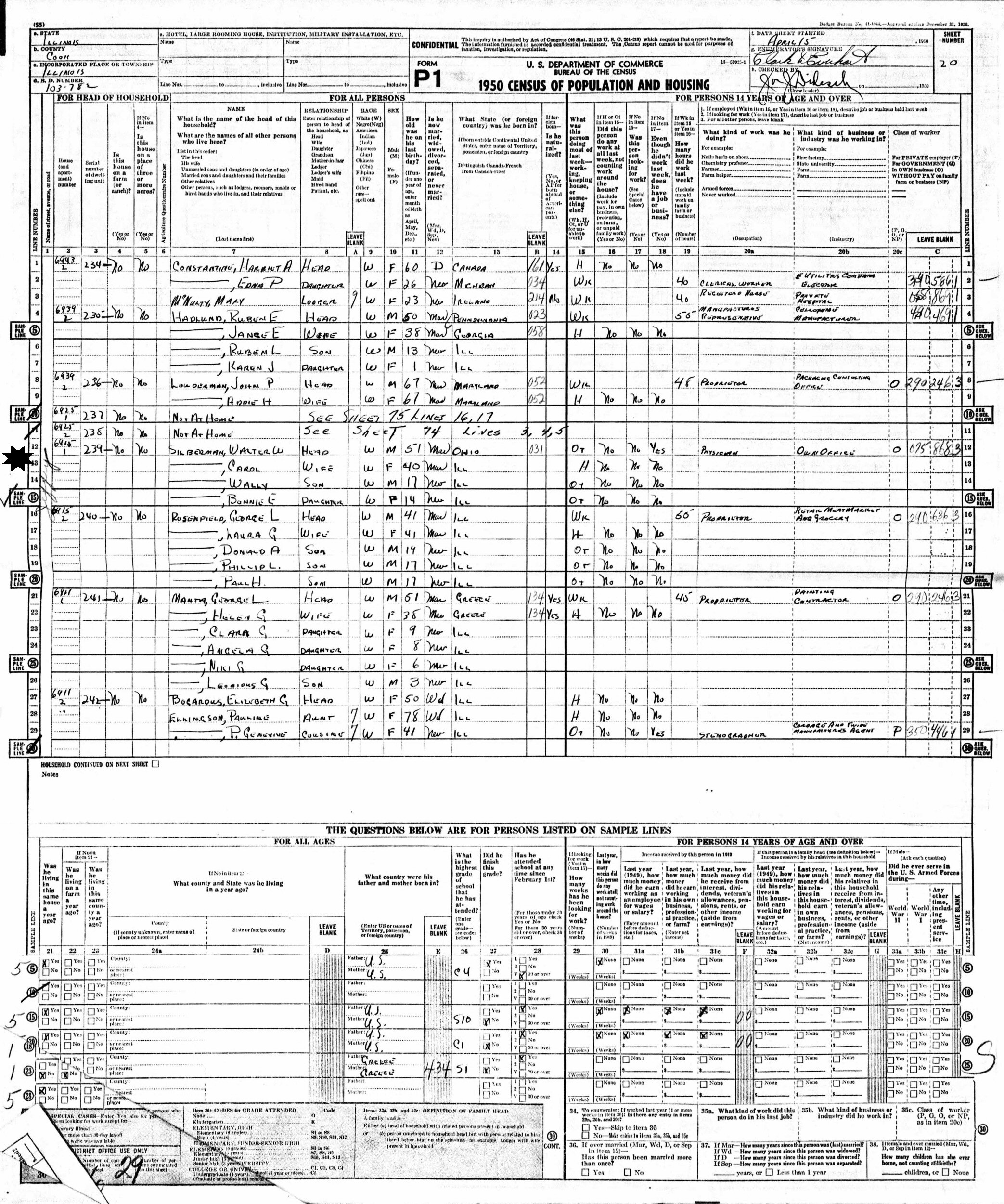 April 15, 1950 - 6415 Jeffrey, Enumeration District 103-782, Chicago, Cook County, Illinois.