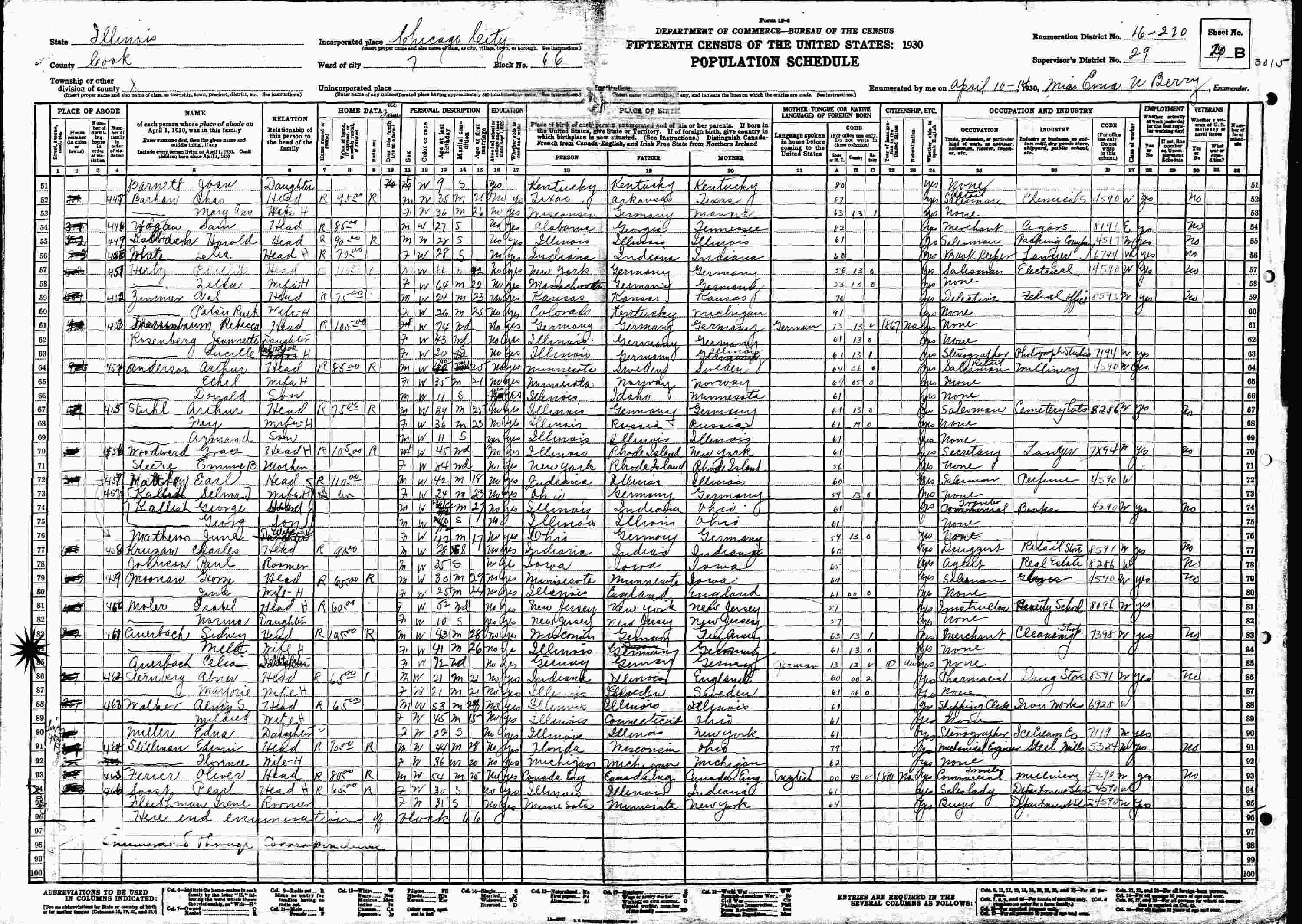 April 10-14, 1930 - Block 66, Ward 7, Supervisor's District 29, Enumeration District 16-220, Chicago, Cook County, Illinois.
