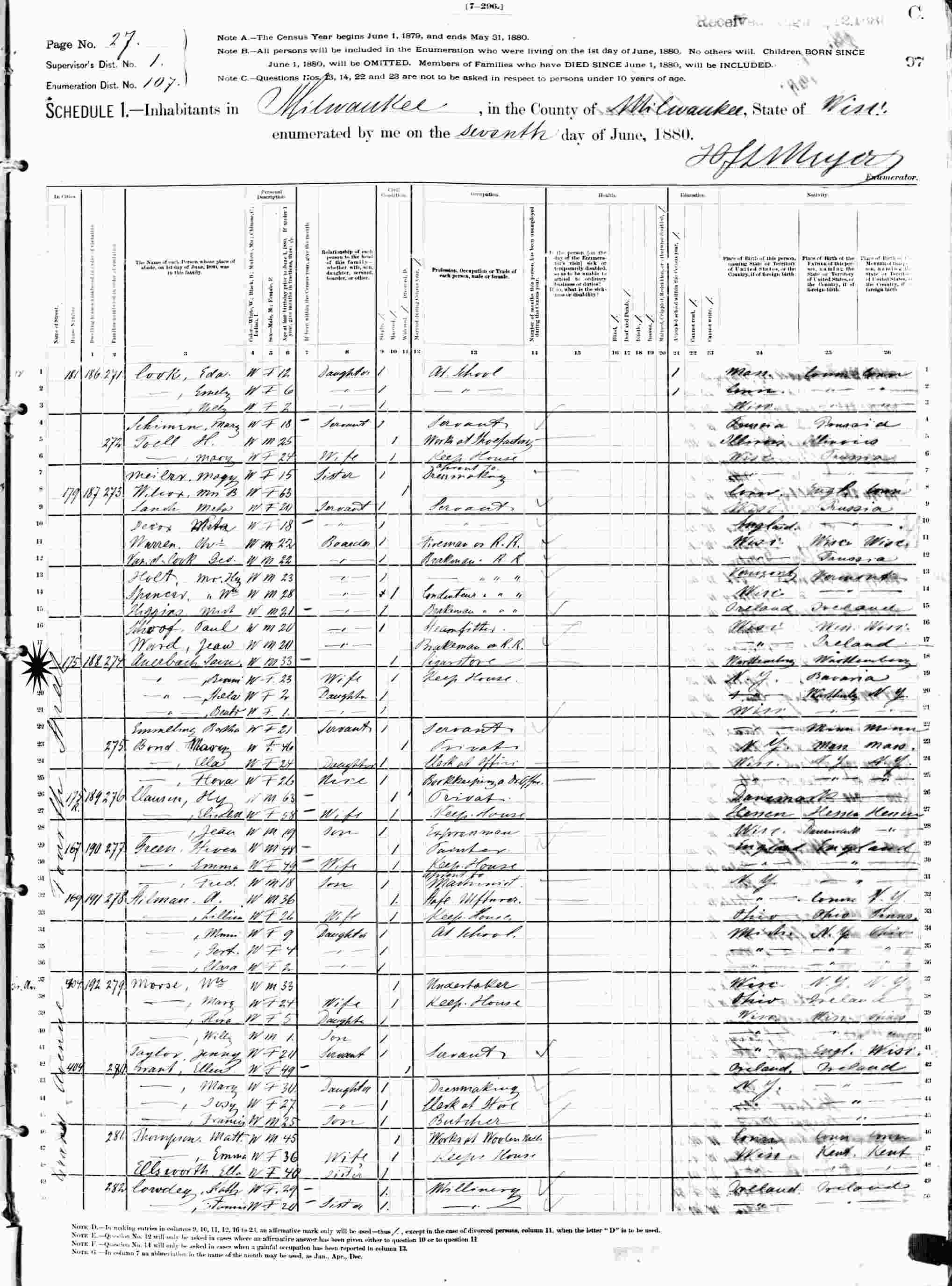 June 7, 1880 - 175 Fourth Street, Supervisor's District 1, Enumeration District 107, Milwaukee, Milwaukee County, Wisconsin.