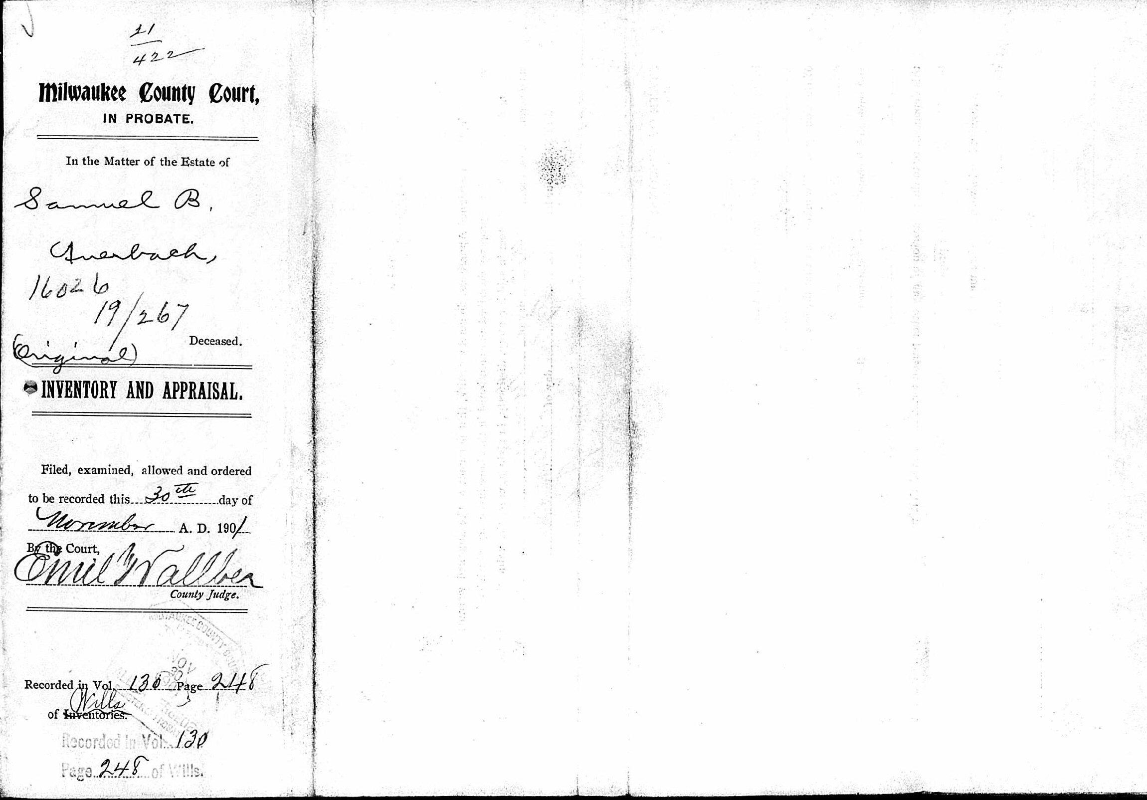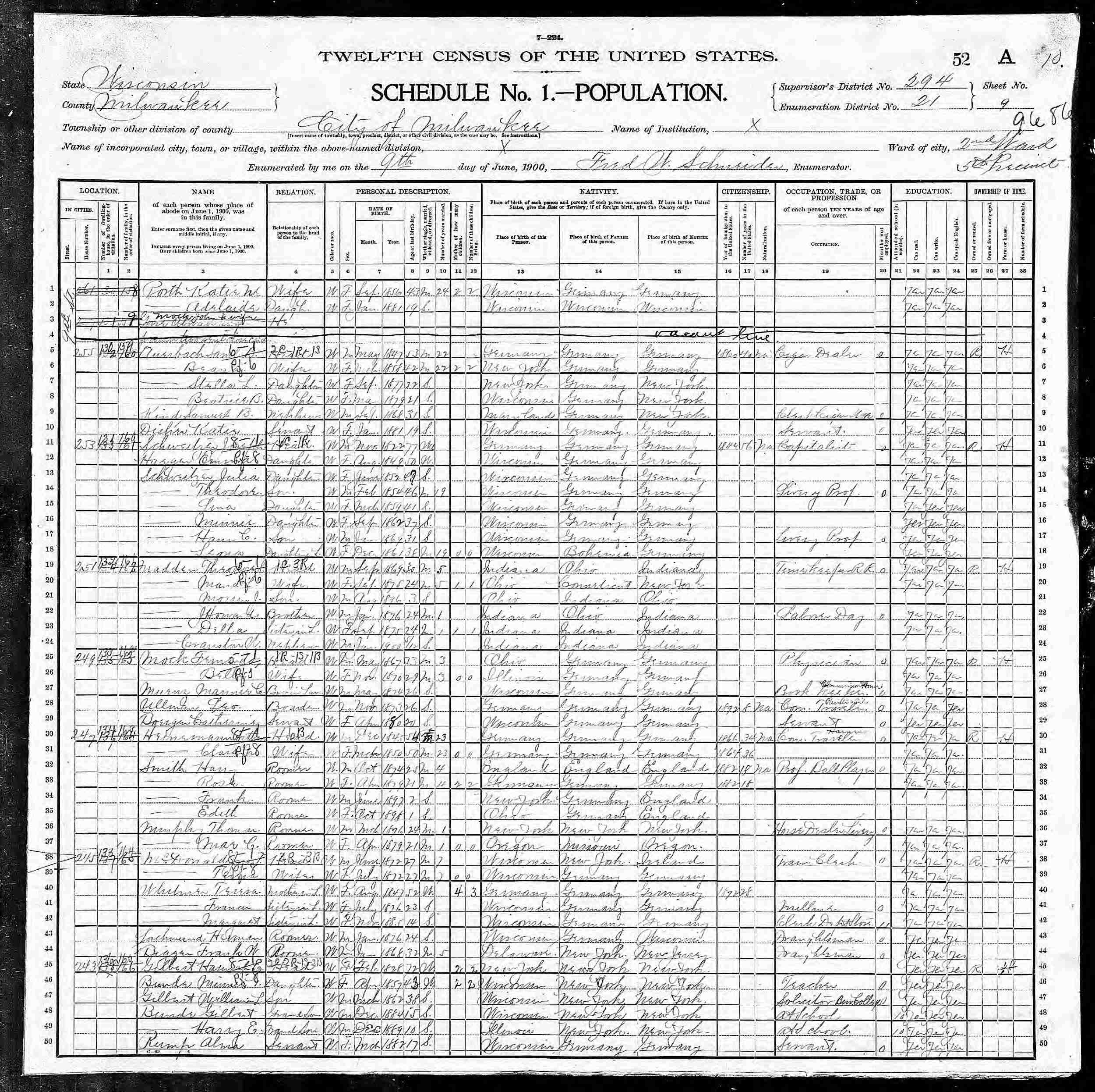 June 9, 1900 - 255 9th Street, Milwaukee, Ward 2, Precinct 5, Supervisor's District 294, Enumeration District 21, Milwaukee County, Wisconsin.
