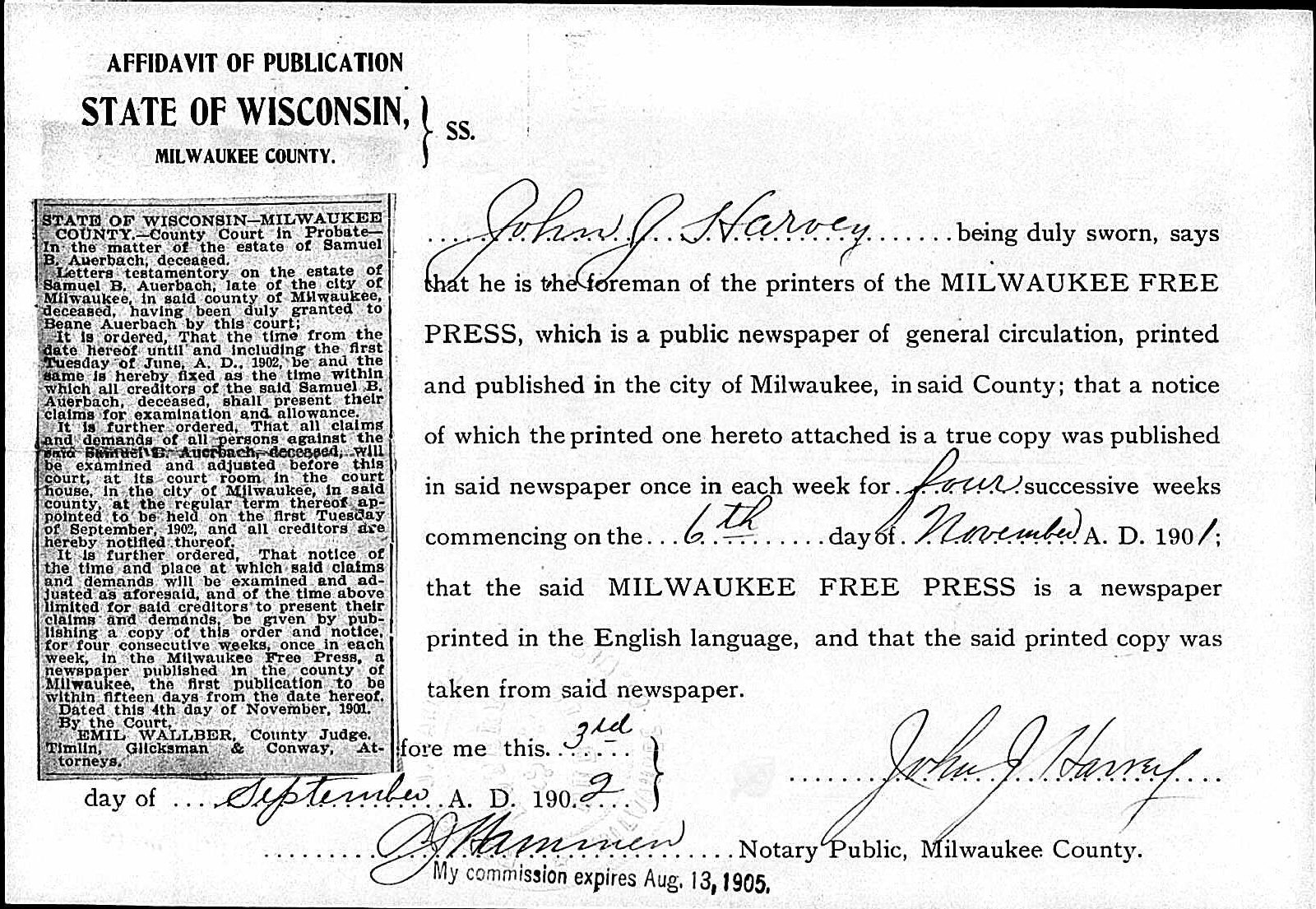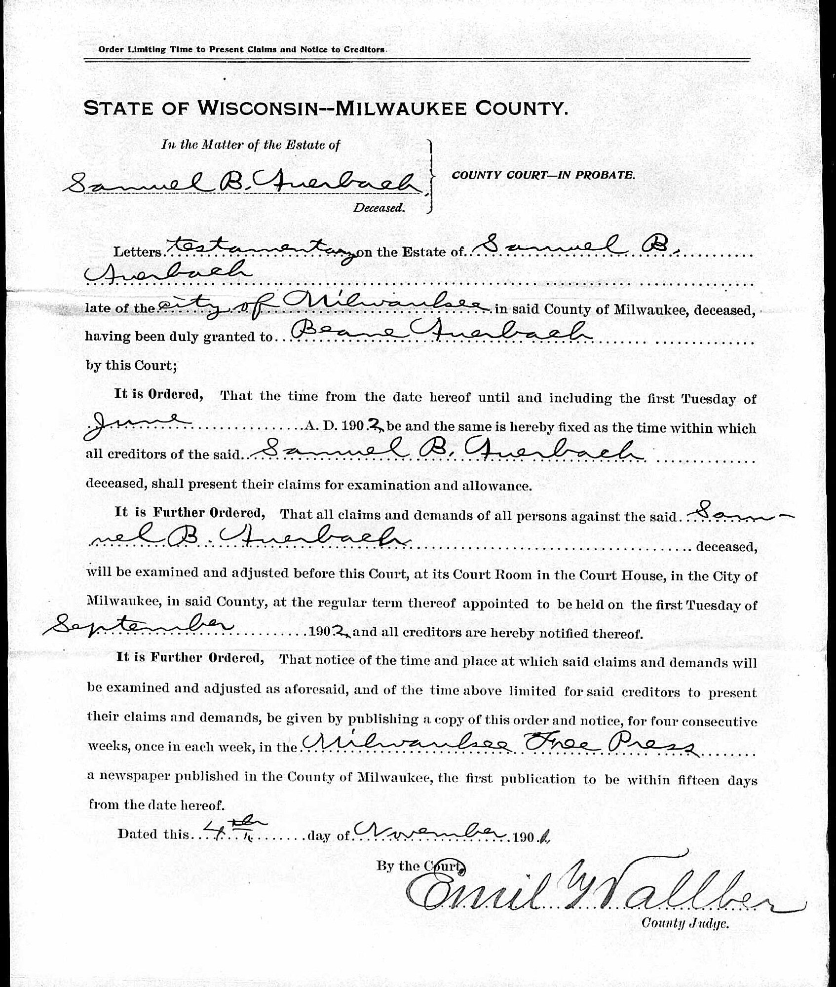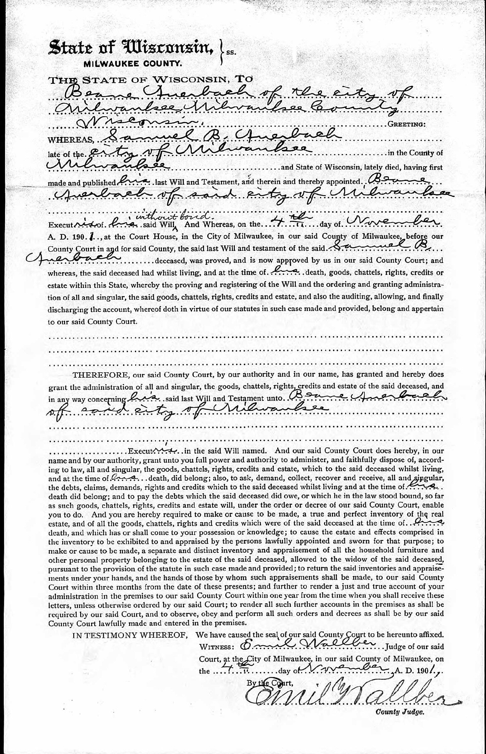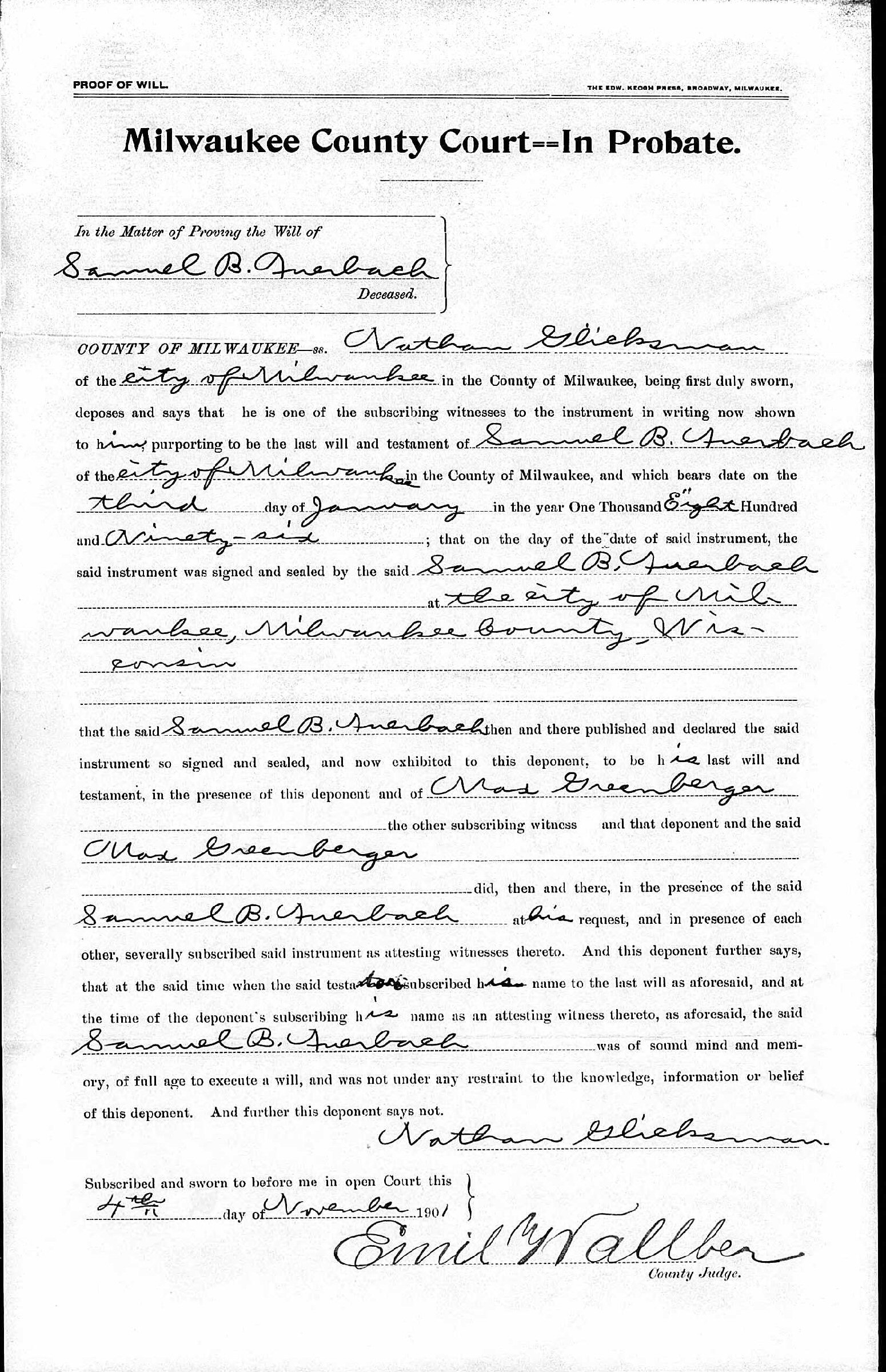 Died: November 1, 1901 in Milwaukee Hospital for Insane, Wauwatosa, Milwaukee County, Wisconsin.