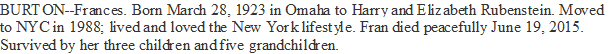 Daughter of Harry and Elizabeth (Castleman) Rubenstein.