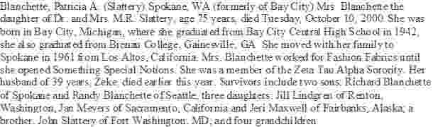 Died: October 10, 2000 in Spokane, Spokane County, Washington.