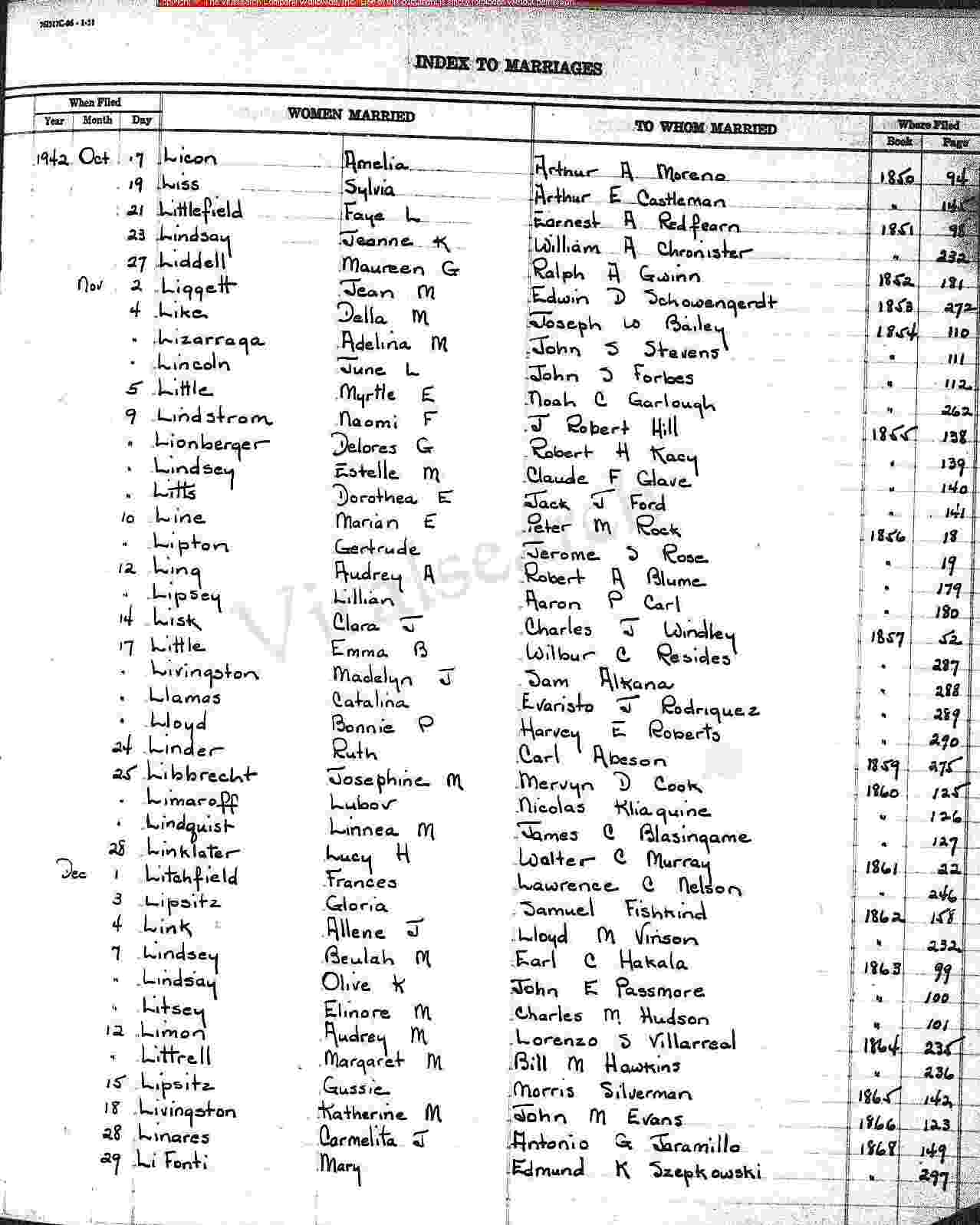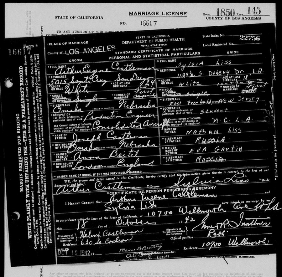 Married: Sylvia Liss October 18, 1942 in Los Angeles County, California. (Marriage recorded: October 19, 1942.)