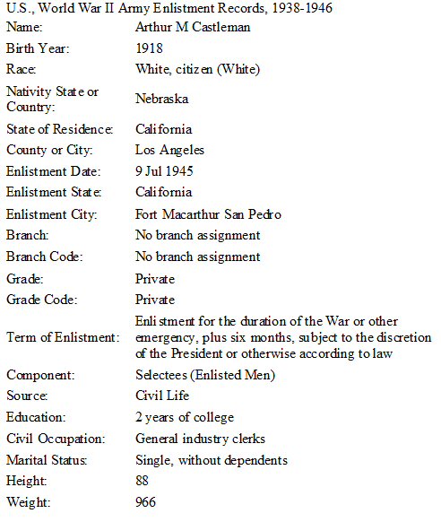 Notes for ARTHUR EUGENE CASTLEMAN: