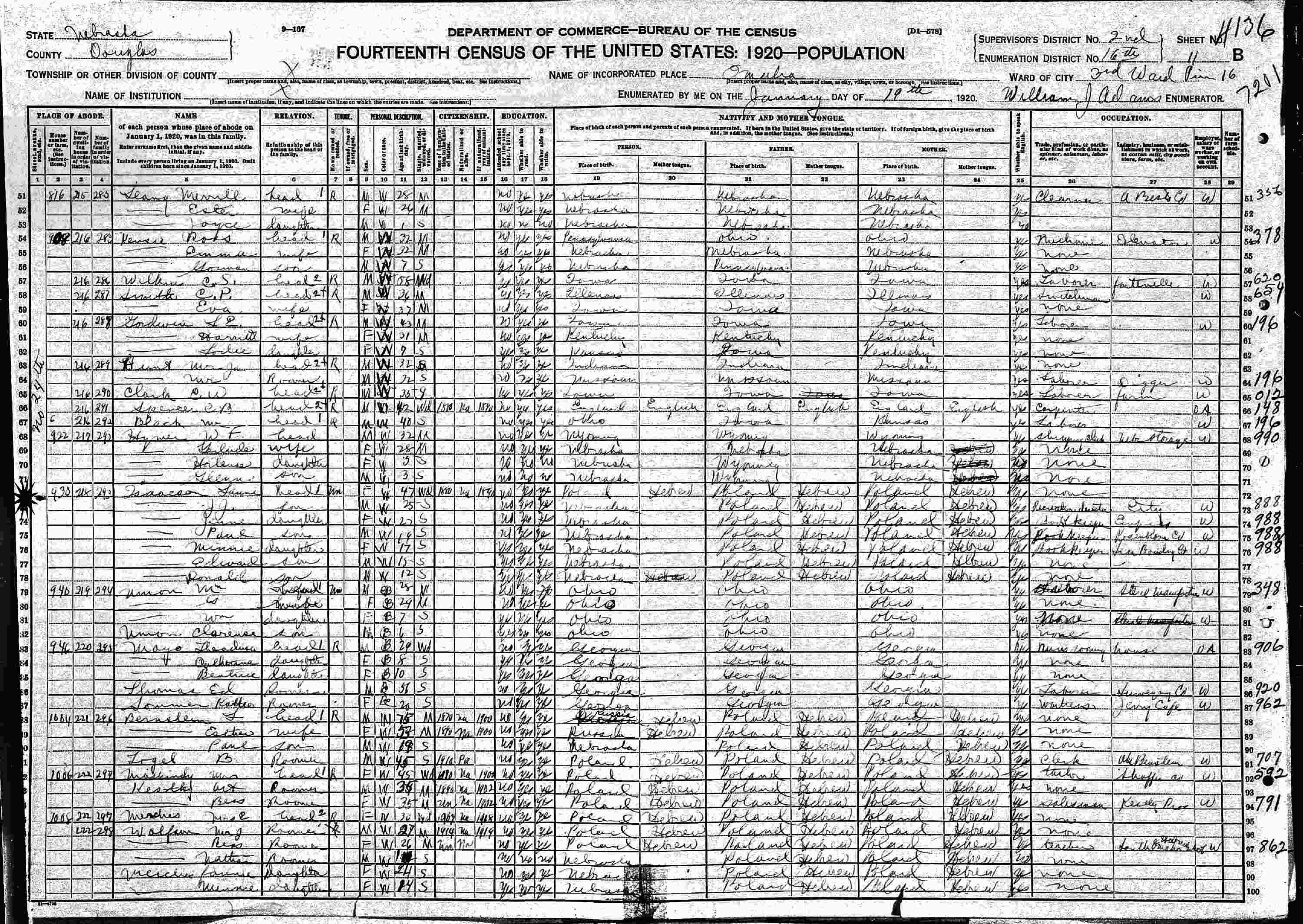 January 19, 1920: 930 North 24th Street, Ward 3, Precinct 16, Supervisor's District 2, Enumeration District 16, Omaha, Douglas County, Nebraska.