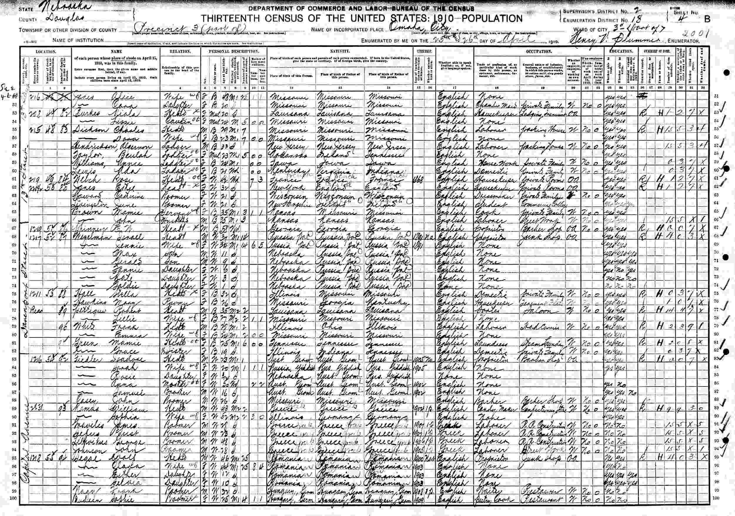 April 25-26, 1910 - 217 Davenport Street, Precinct 3, Ward 3, (Part of 7), Supervisor's District 2, Enumeration District 18, Omaha, Douglas, Nebraska.