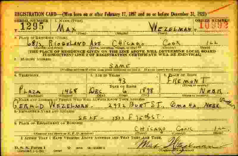 February 16, 1942 - 6812 Ridgeland Avenue, Chicago, Cook County, Illinois.