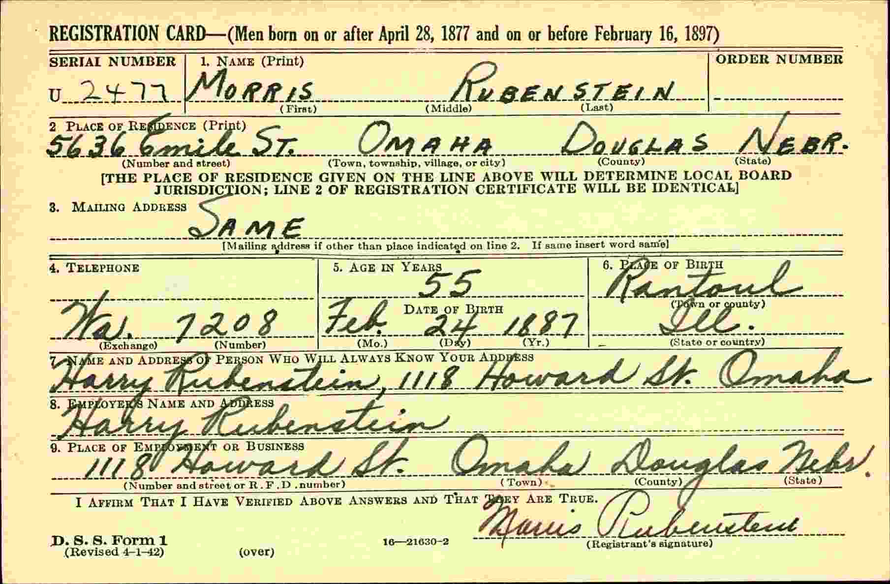 June 5, 1917 - 2425 Pinkney, Omaha, Douglas County, Nebraska.