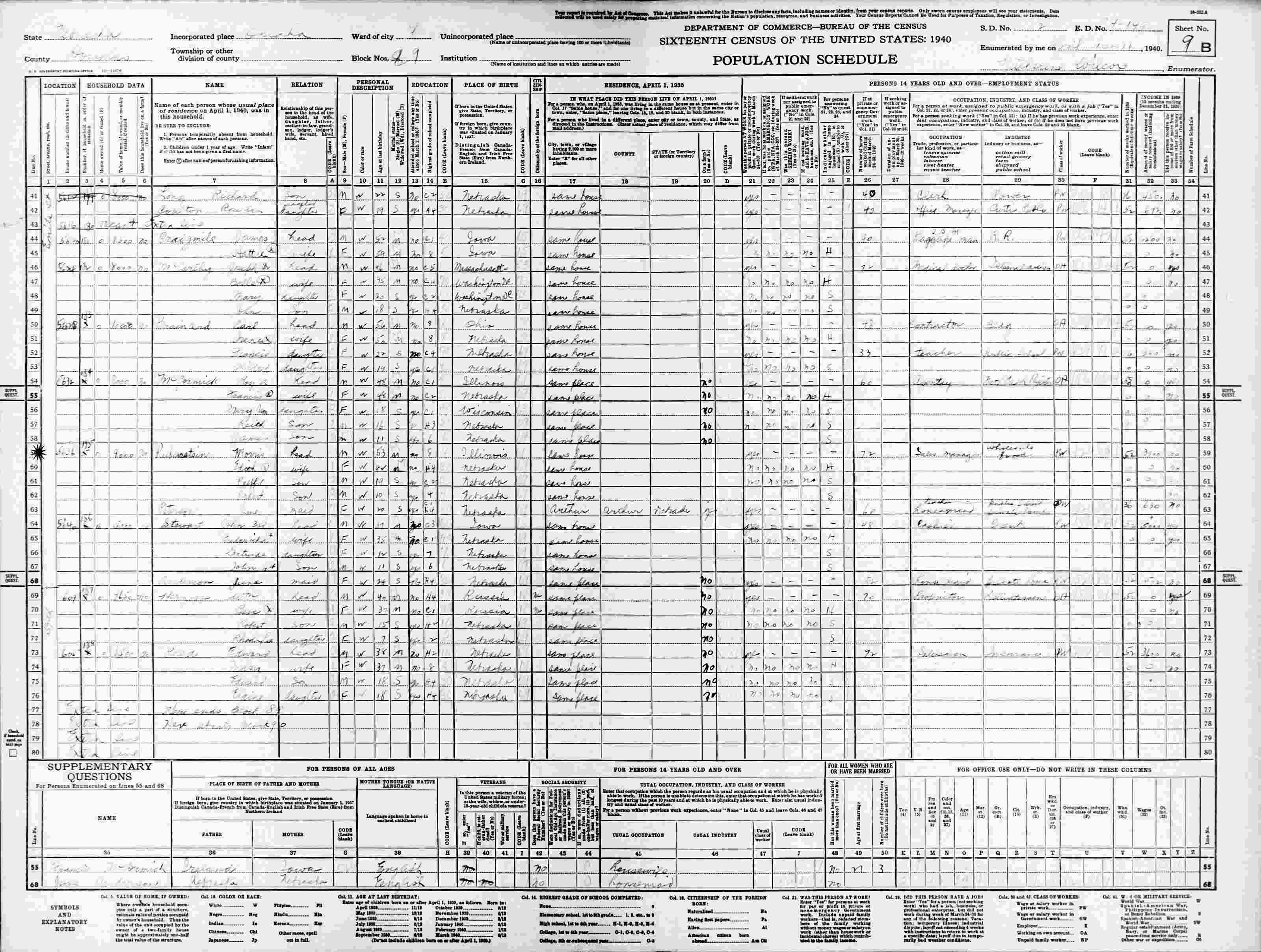 June 8, 1900 - 607 N 16 Street B, Ward 3, Supervisor's District 2, Enumeration District 29, Omaha, Douglas County, Nebraska.