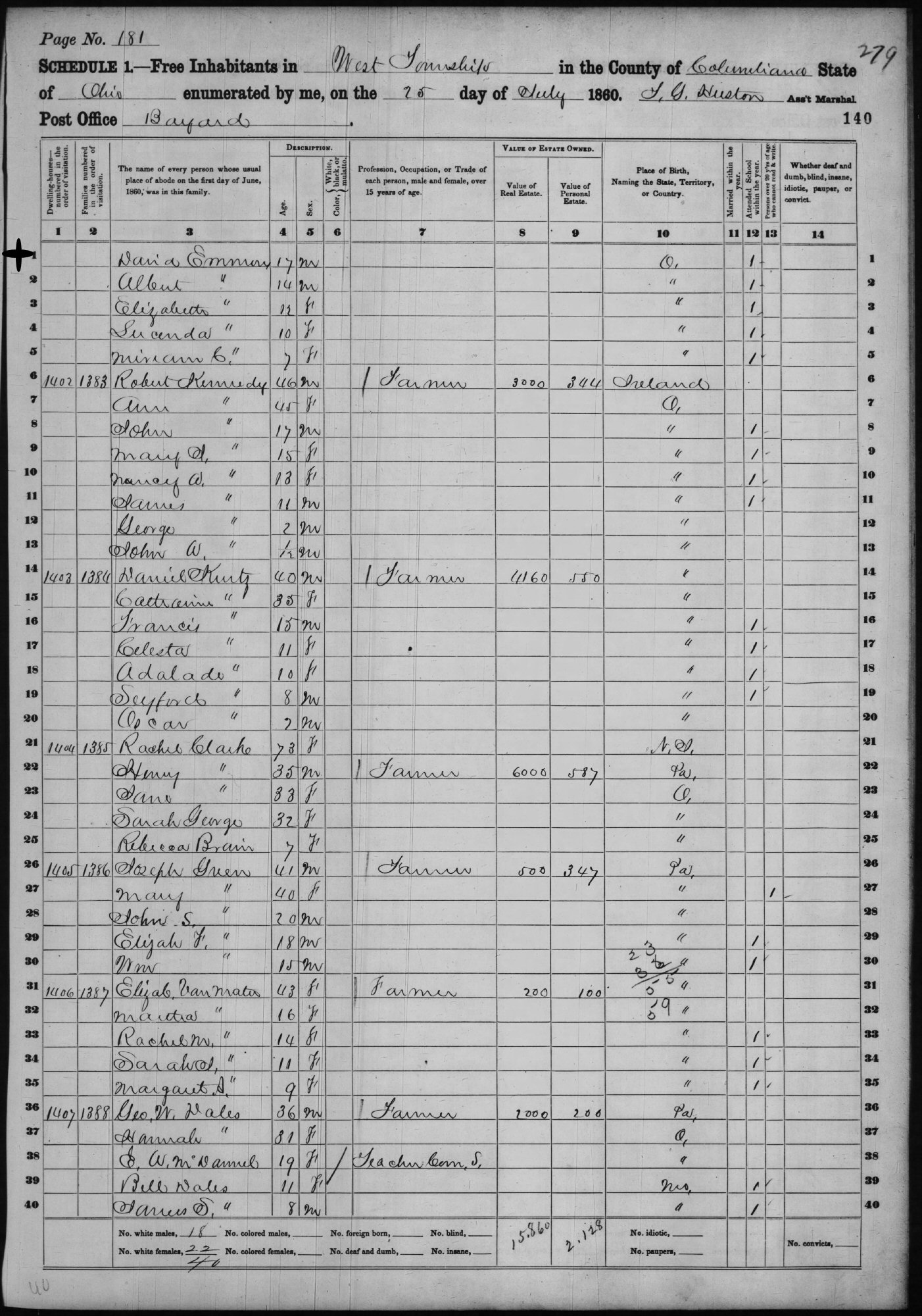 1870 - West Township, Columbiana County, Ohio.