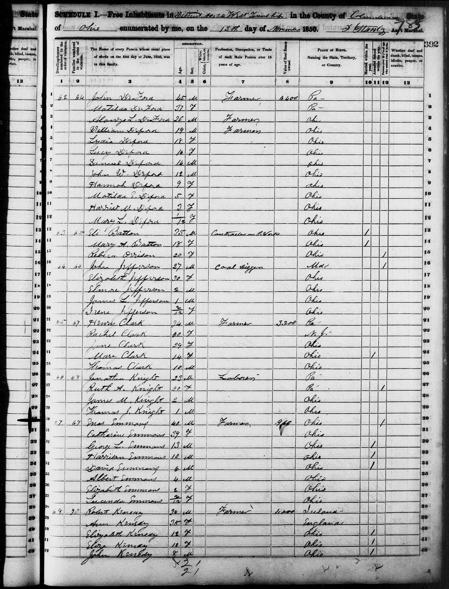 1850 - West Township, Columbiana County, Ohio.
