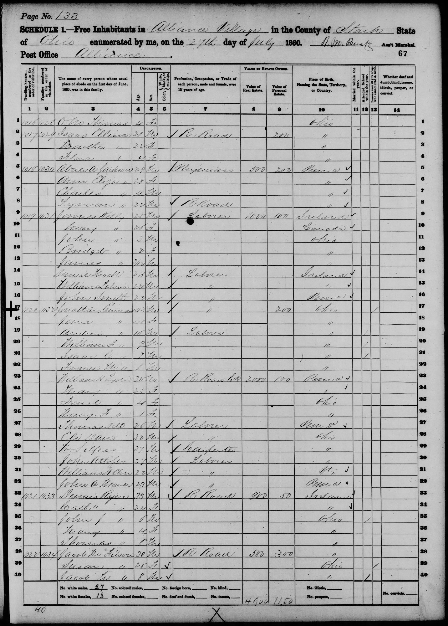 Census: July 27, 1860 - Alliance, Stark County, Ohio.