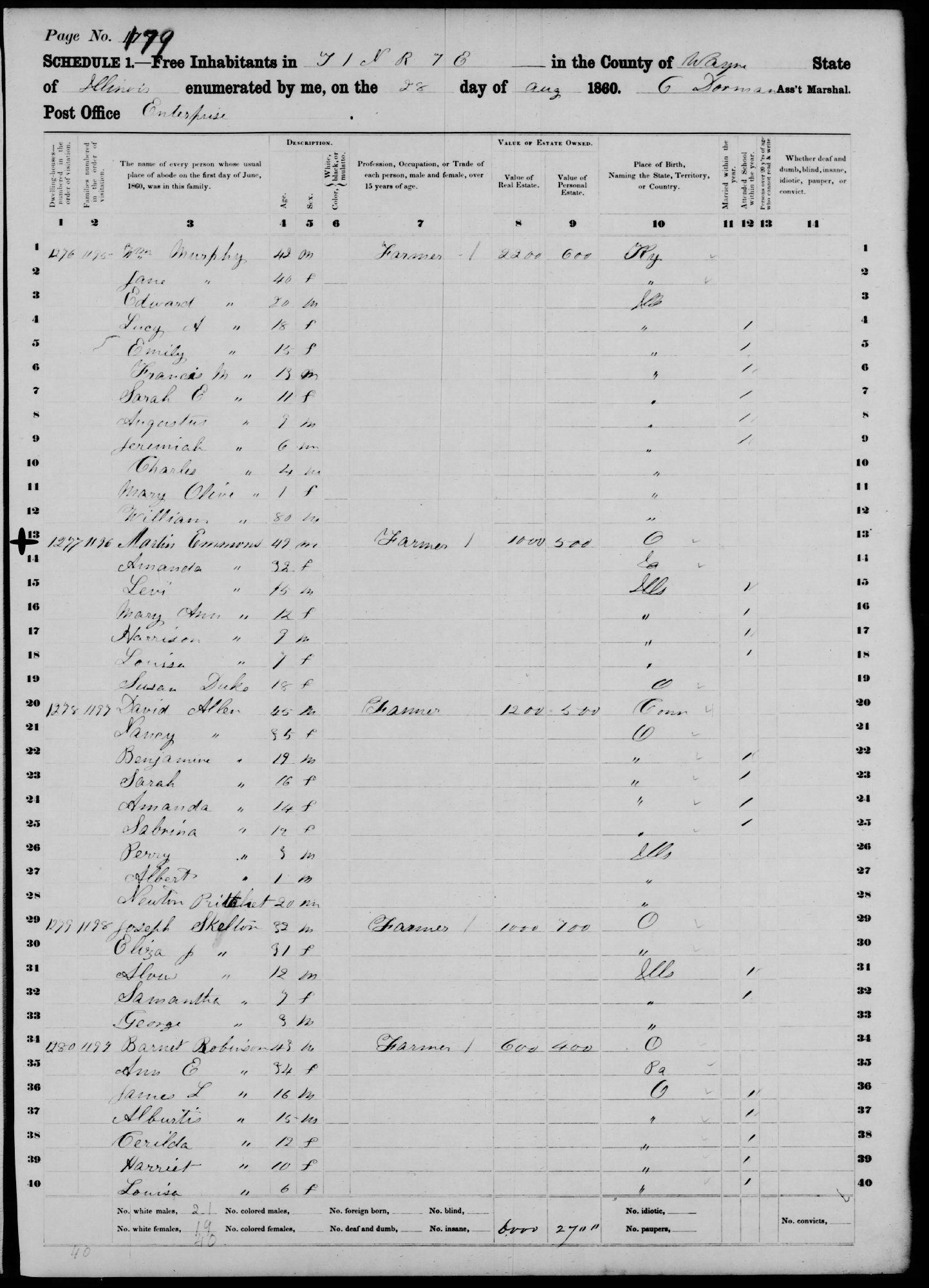 August 28, 1860 - T 1 N R 7 E, Wayne County, Illinois.