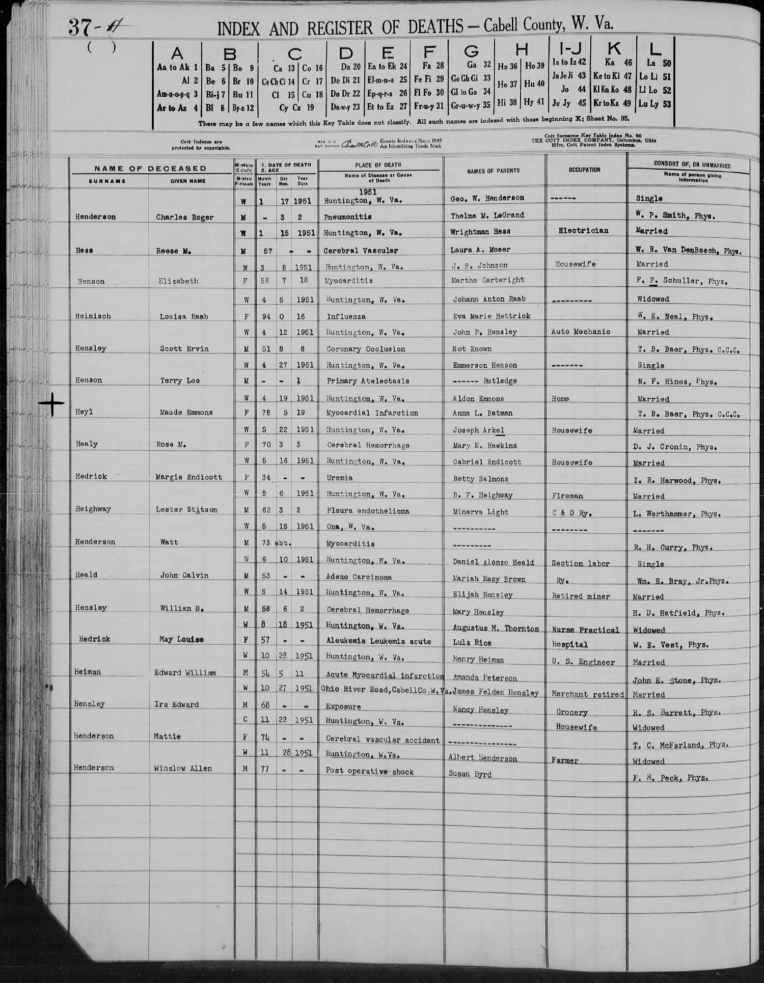 Died: April 19, 1951 in Huntington, Cabell County, West Virginia.