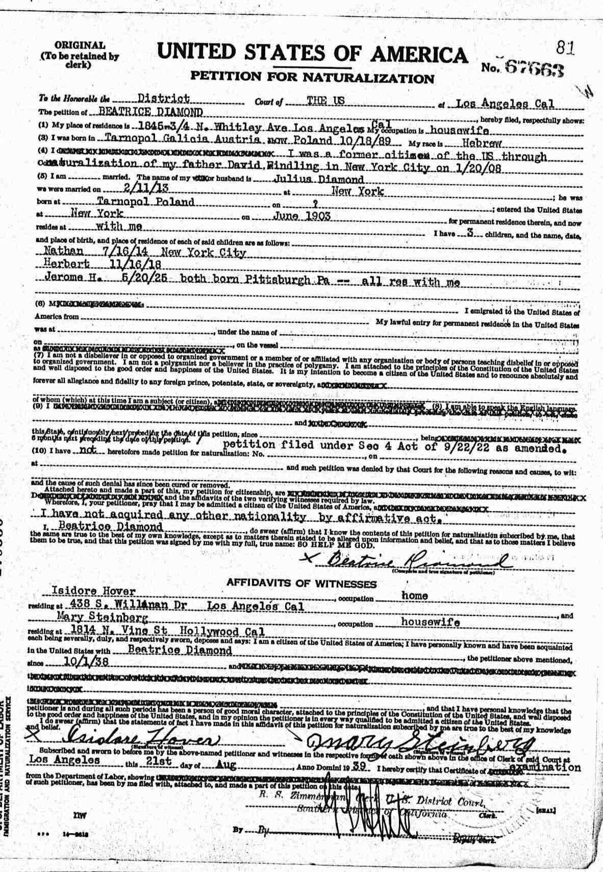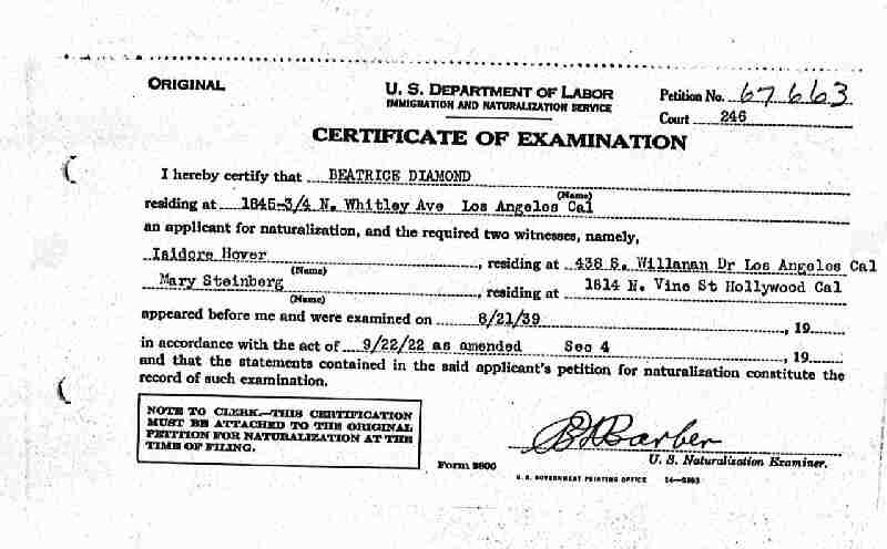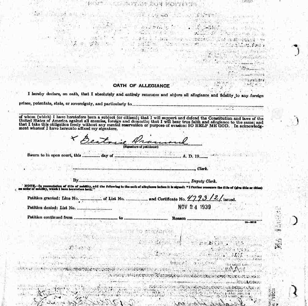 Naturalization: January 20, 1908 (through father's naturalization). Then re-naturalized after married November 24, 1939.