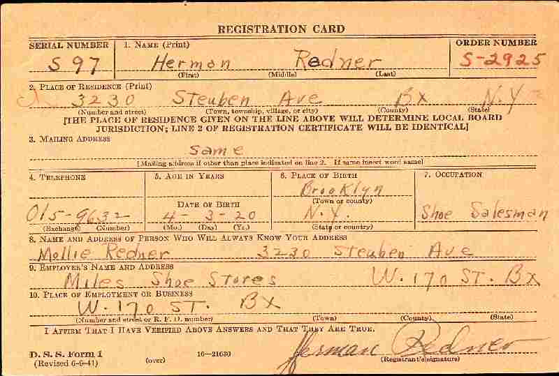 July 1, 1941 - 3230 Stueben Avenue, Bronx, New York.