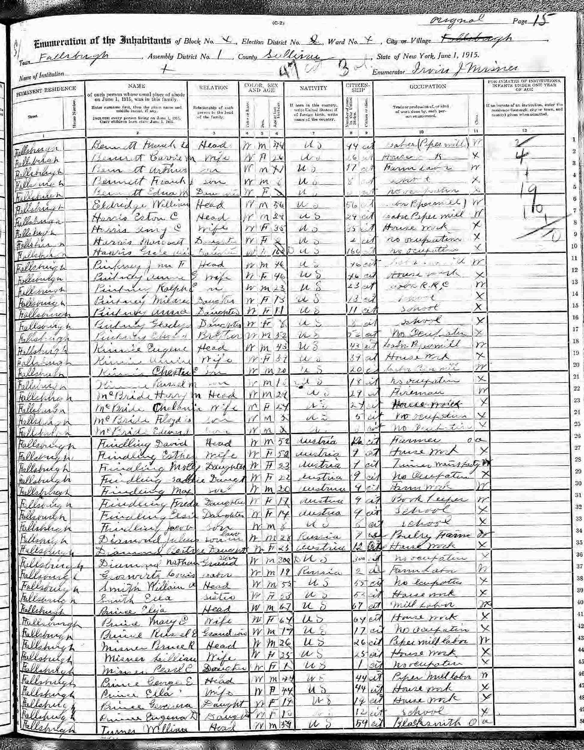 June 1, 1915 - New York State - Assembly District 1, Fallsburg, Sullivan County, New York.
