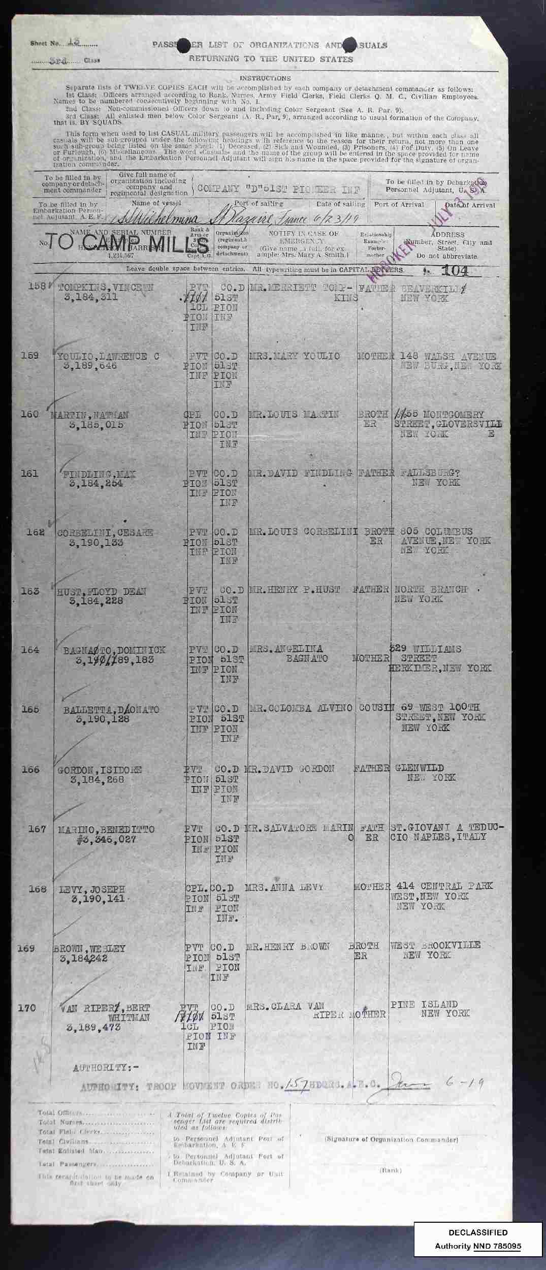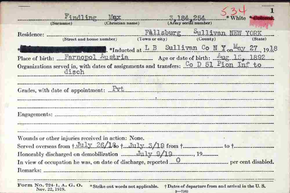 Bet. May 27, 1918 - July 09, 1919 - WWII - Private, Company D, 51st Infantry.