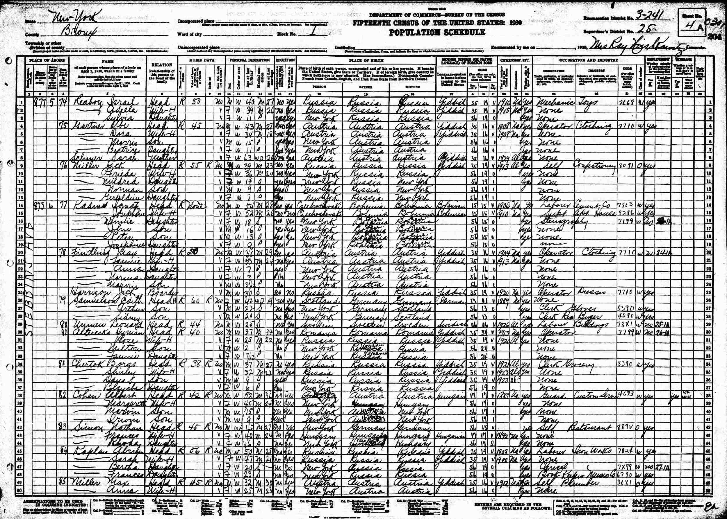 1930 - 873 Stebbins Avenue, Block I, Supervisor's District 25, Enumeration District 3-241, Bronx, New York.