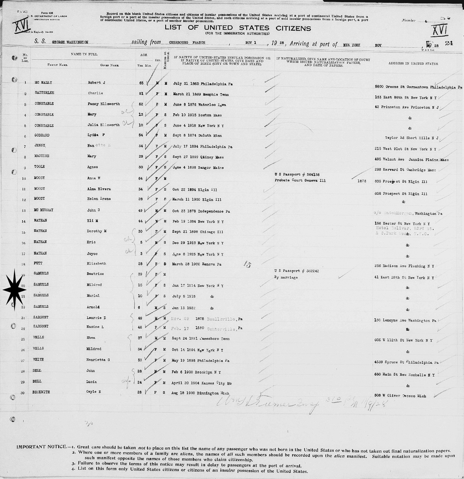 Ship Manifest November 1, 1928
