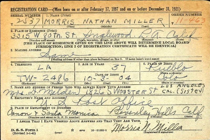 February 15, 1942 - Registration - Inglewood, Los Angeles County, calfironia.