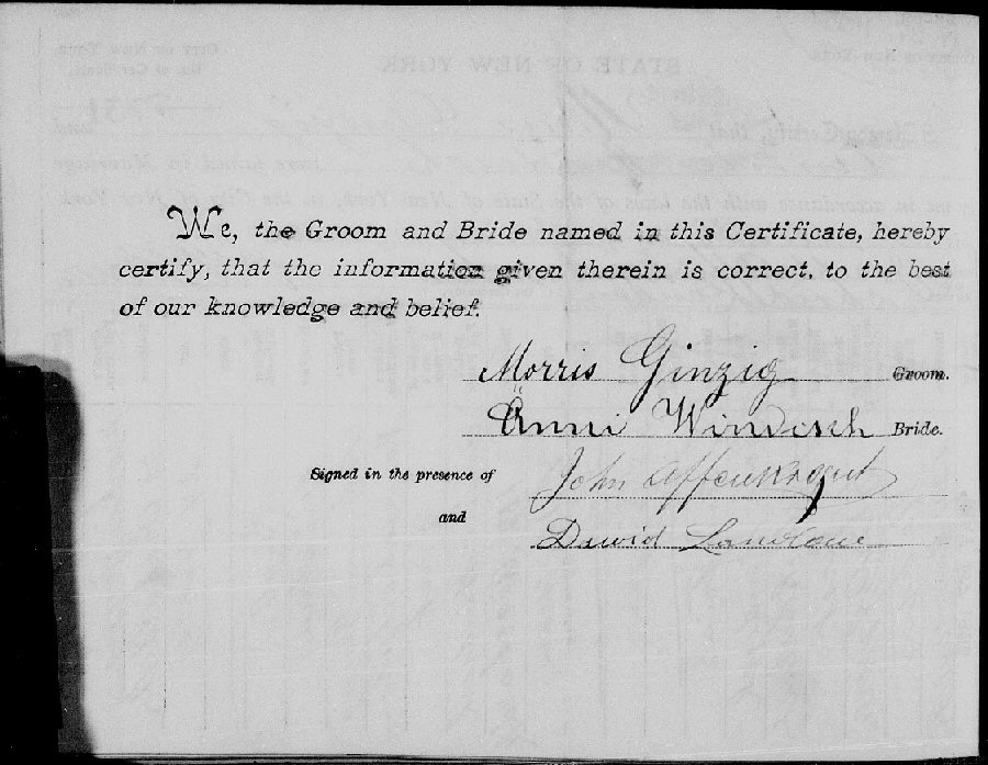 Married: Morris "Mozes" Gunzig May 16, 1895 in Manhattan, New York.