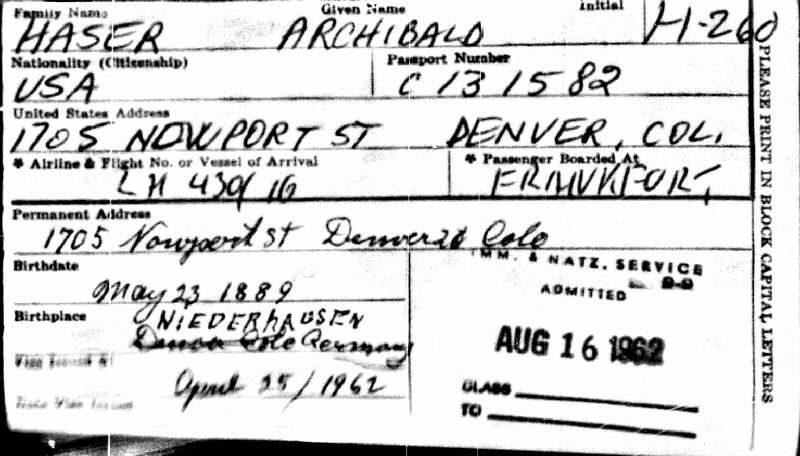 Notes for ARCHIBALD "ARCHIE" HASER: