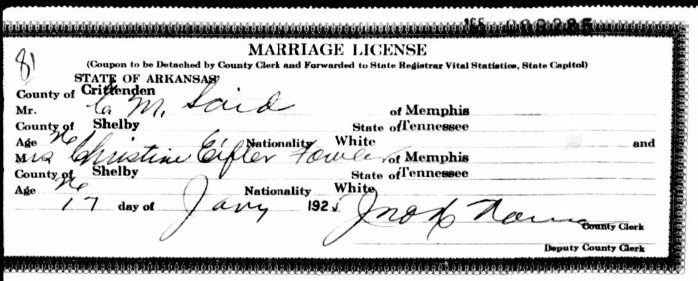 (2) C M Said January 17, 1925 in Crittenden, Arkansas.
