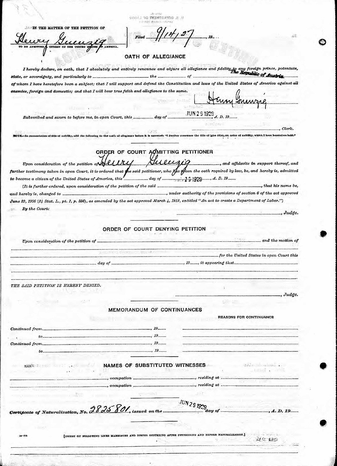 Naturalization: June 29, 1928 in Chicago, Cook County, Illinois. (Certificate No. P=44188 CN-2825801.)