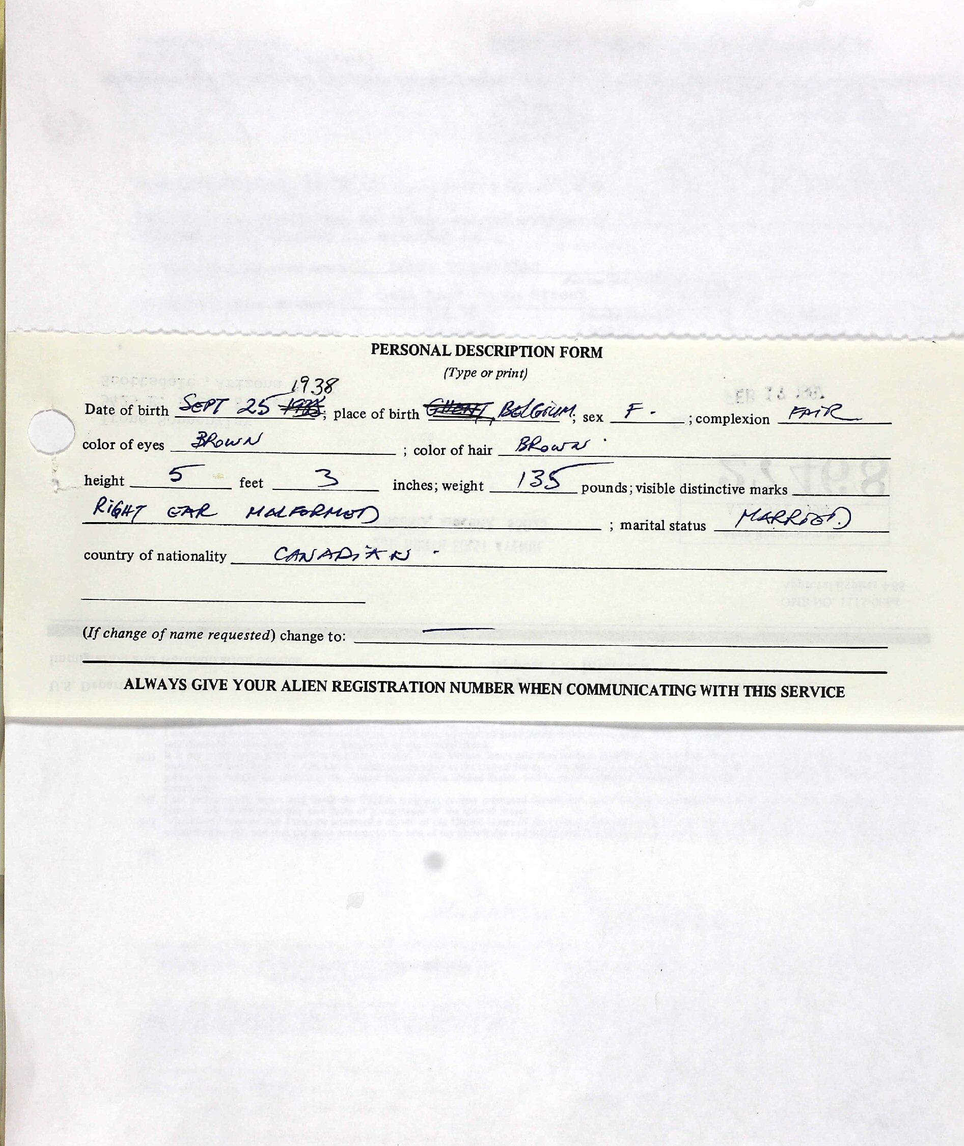 May 30, 1978 - To Phoenix, Arizona from Canada.