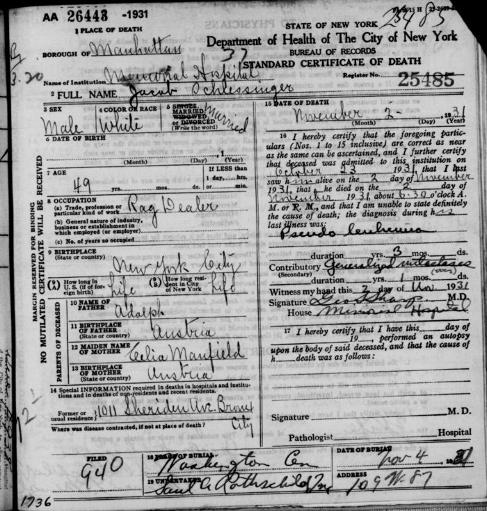 Died: February 11, 1931 in Manhattan, New York. (Death Certificate: #25485.)
