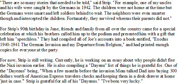 Immigration: during the Holocaust when they fled Antwerp, Belgium, in May 1940 for France, and, after a year, for the United States via Spain and Portugal.