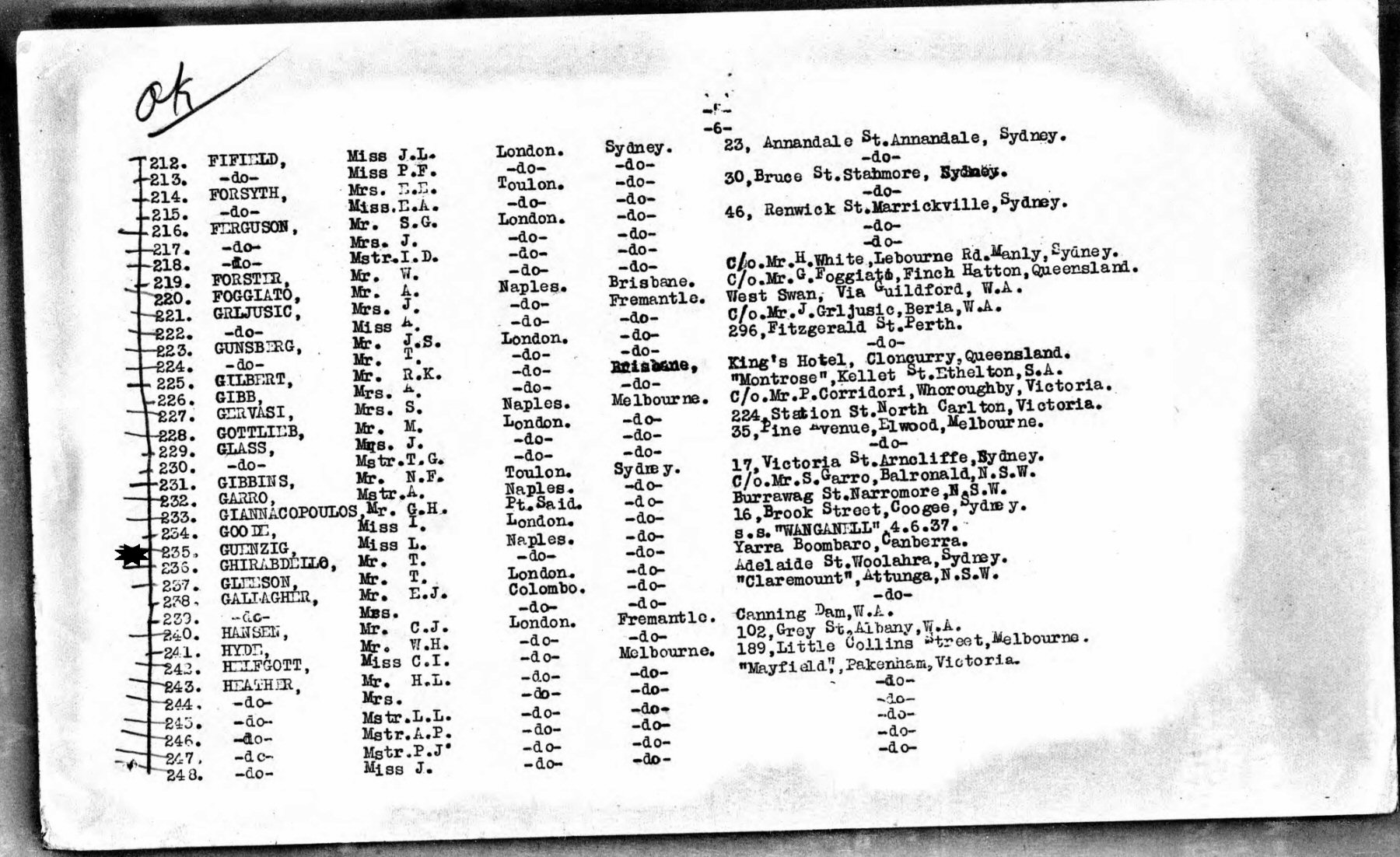 Immigration: May 25, 1937 to Australia; Ship: Oronsay.