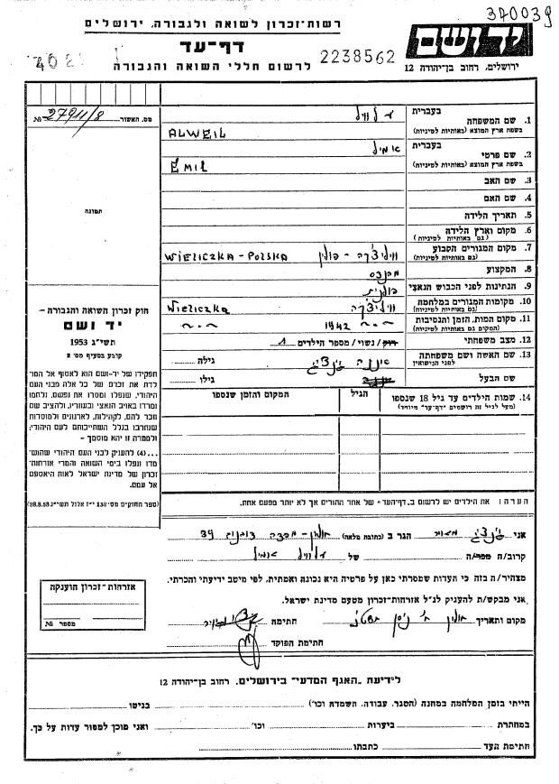 Notes for MENDEL EMIL ALWEIL: Son of ? and ?. Born: 1883 in Moscika, L'viv, Ukraine. Died: 1942 in Wieliczka, Poland (Shoah). Married: Chana "Anna" Gunzig June 28, 1910 in Krakow, Poland.