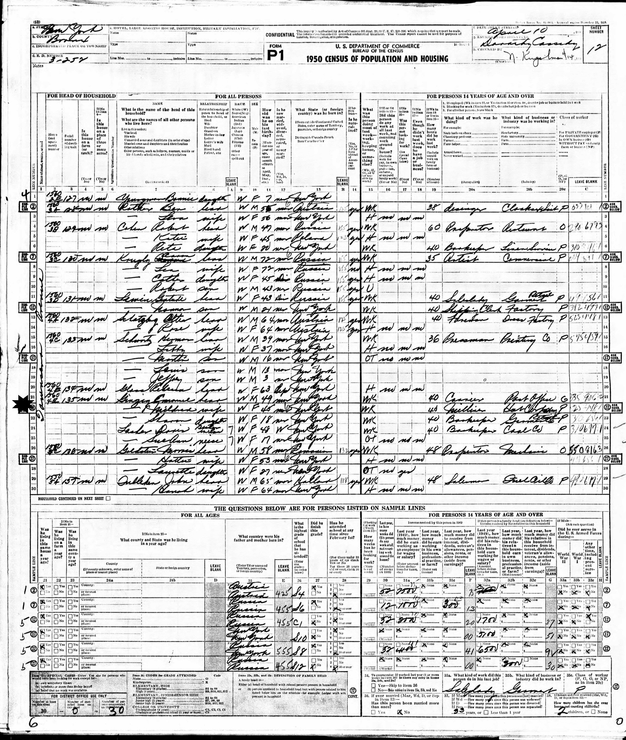 April 10, 1950 - 1560 Townsend(?) Avenue 4E, Enumeration District 3-252, Bronx, New York.