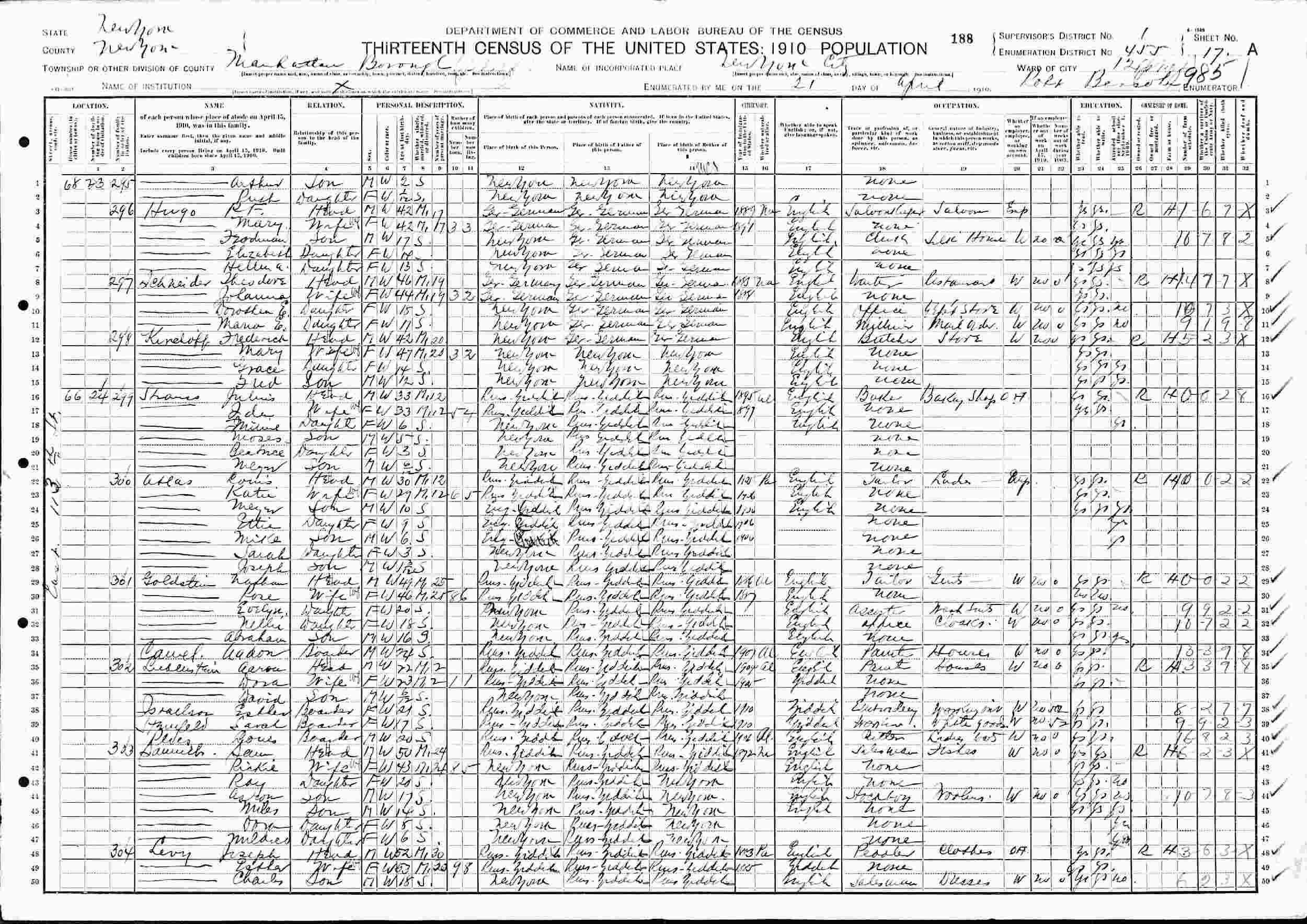 April 21, 1910 - 66 East 113th Street, Ward 12, Supervisor's District 1, Enumeration Distrcit 455, Manhattan, New York, New York.
