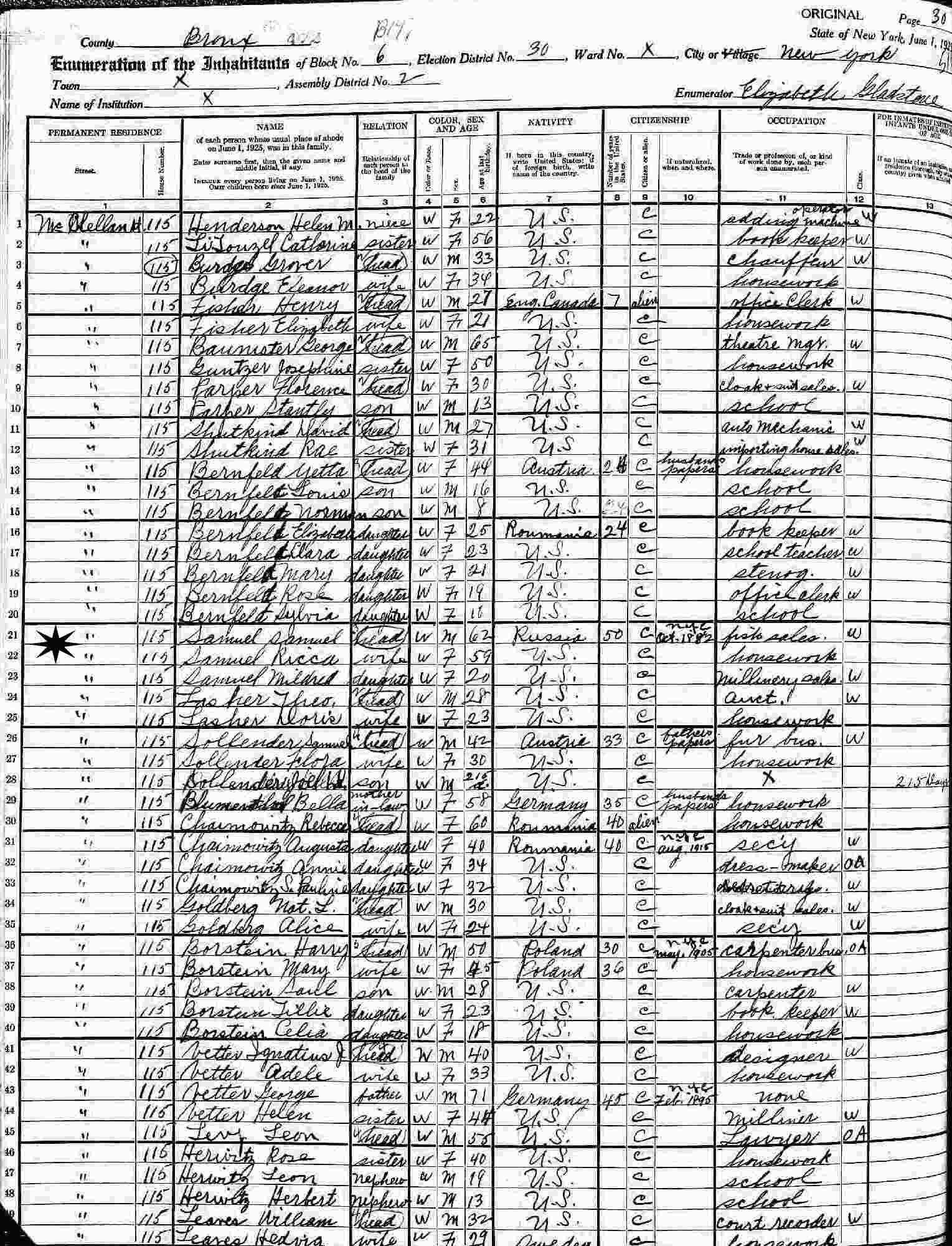 June 1, 1925 - 115 McCellan Street, Block 6, Assembly District 2, Election New York (w/parents).