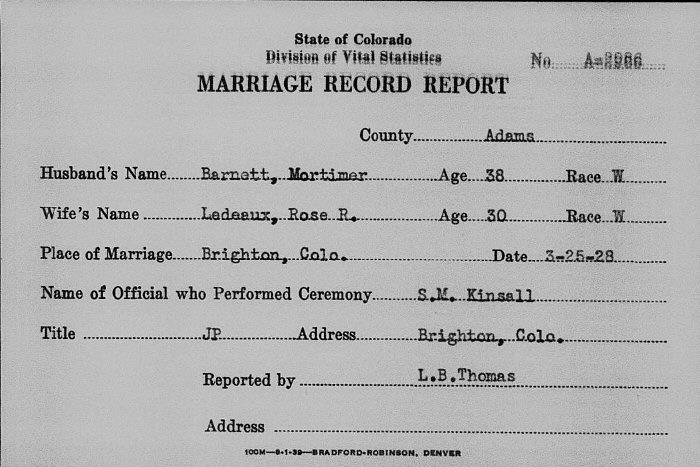 (2) Rose R Leadeaux March 25, 1928 in Brighton, Adams County, Colorado.